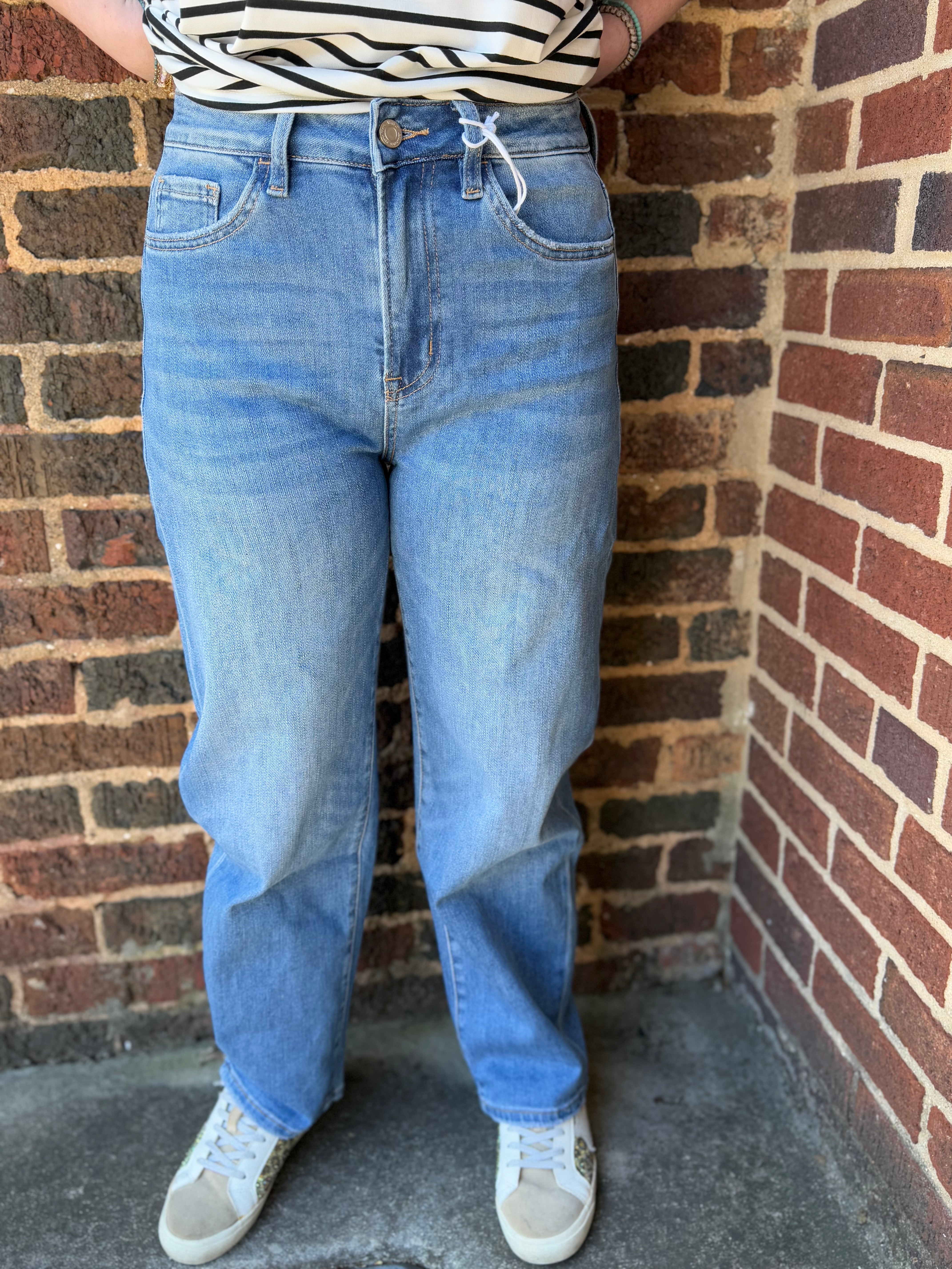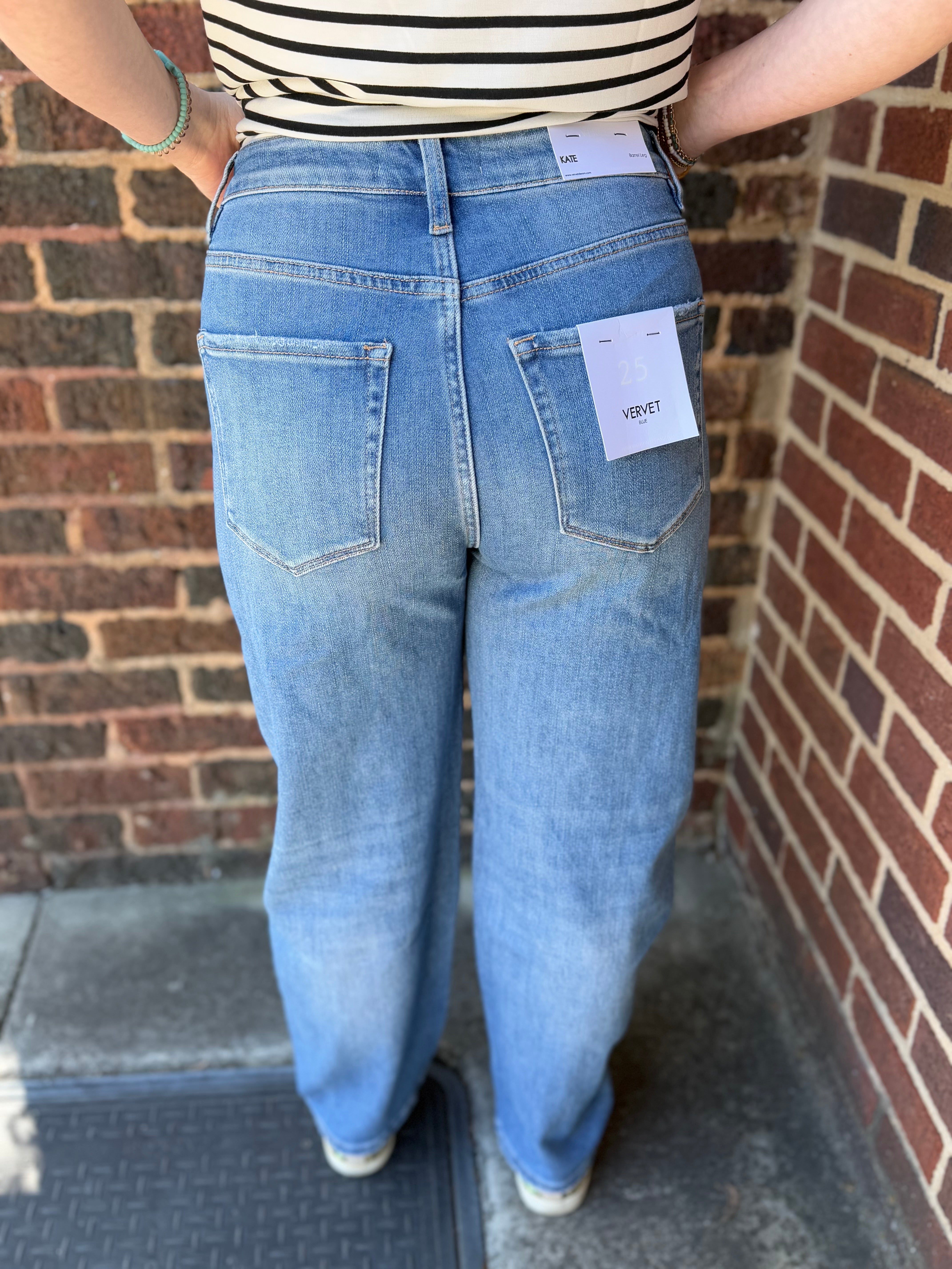 Discover the perfect blend of style and comfort with Vervet Kate Barrel Jeans. Made with stretchy material, these trendy blue jeans offer a flattering fit and maximum flexibility. Elevate your fashion game while feeling confident and comfortable all day long.