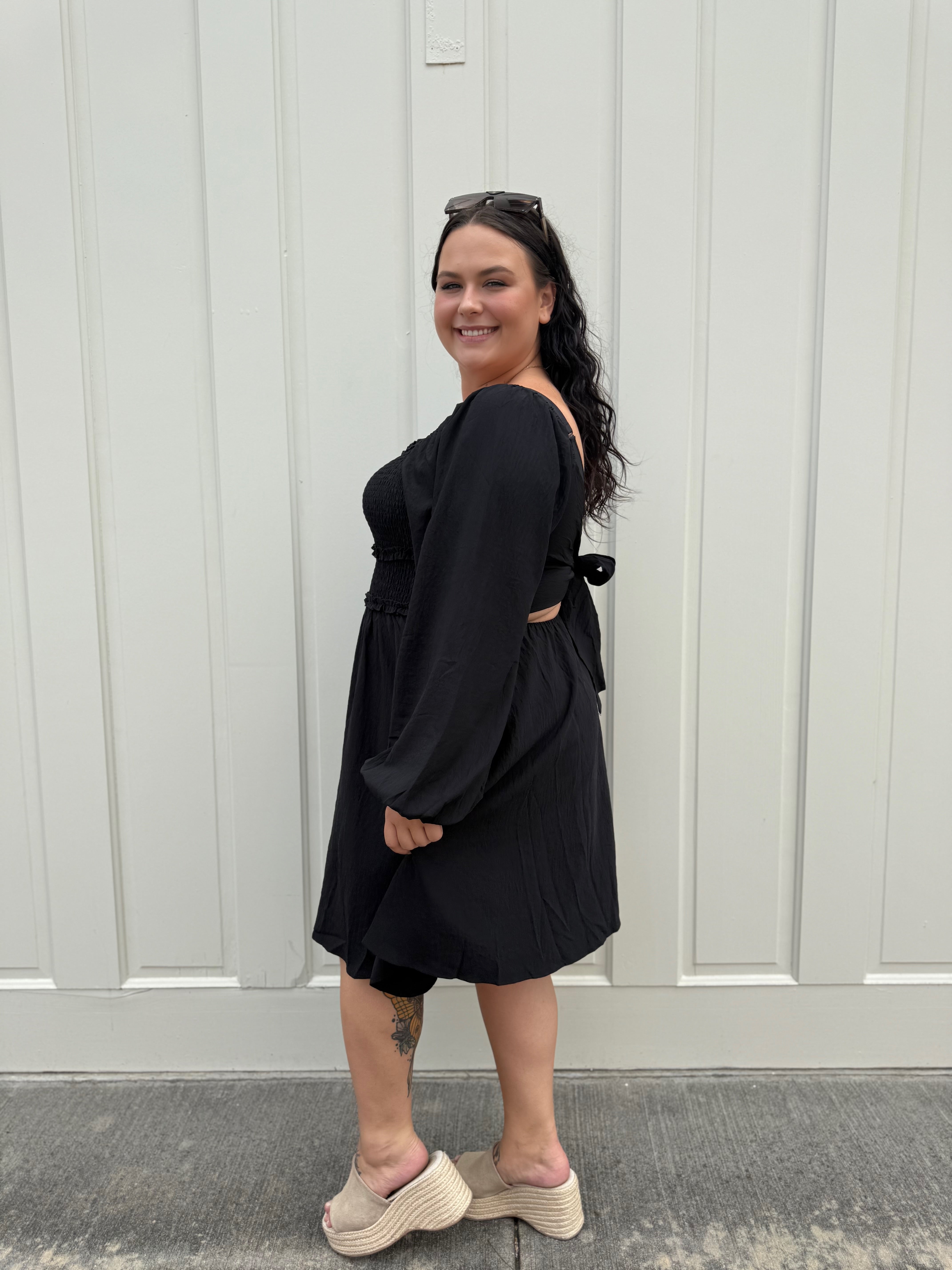 Elevate your fall style with the Curvy Harvest Haze Dress, available in classic black or warm rust. Its playful tie-back detail adds a flirty touch, making this dress a fun and effortless choice for the season. Perfect for layering or wearing on its own, it’s sure to brighten up your autumn wardrobe.