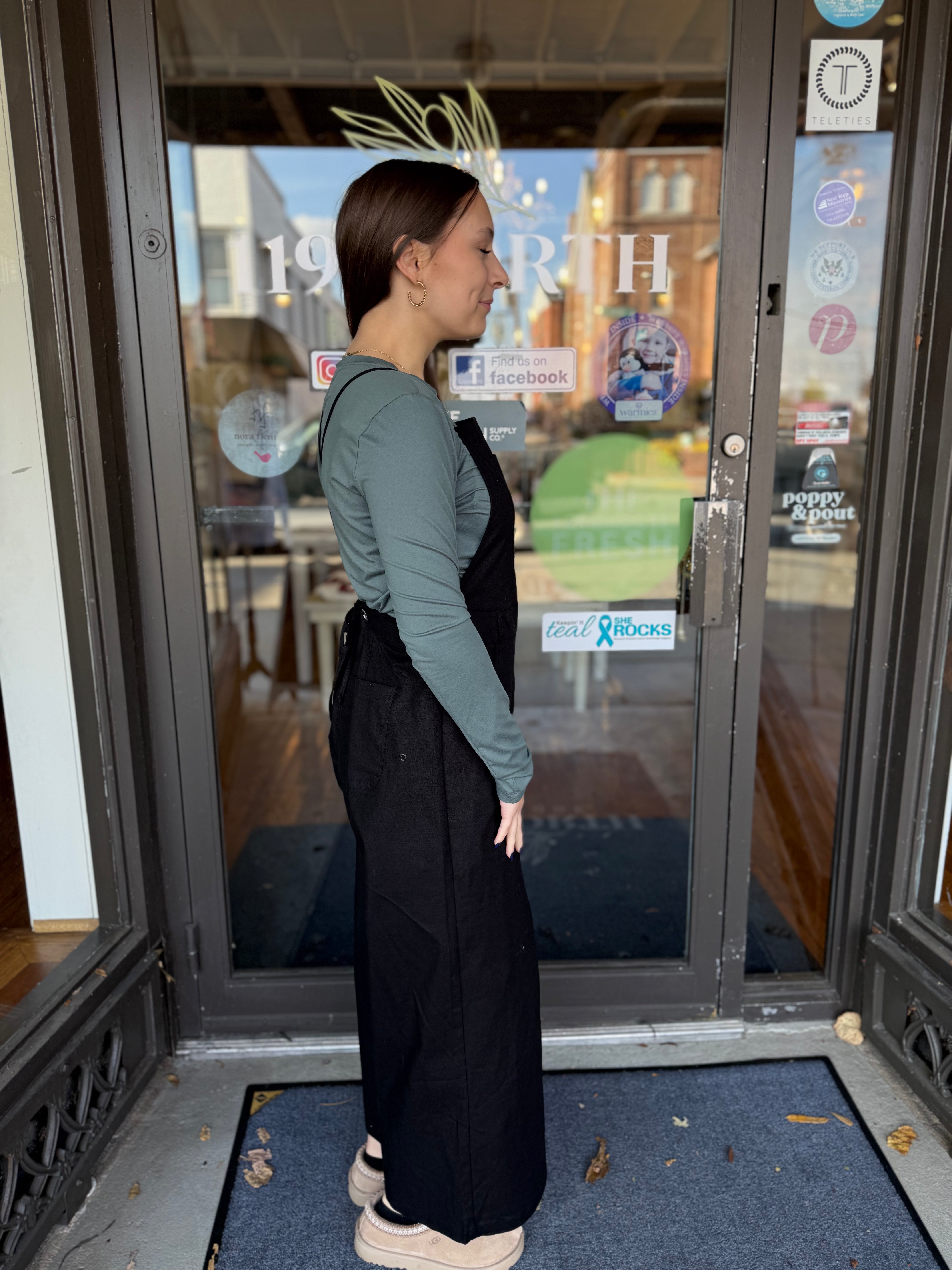 Step into fall with the Misses Midnight Meadow Overalls—black, lightweight, and bursting with playful sass. These overalls bring cozy vibes without the bulk, perfect for crisp days and spontaneous adventures. Dress them up or down and let your style bloom all season long!