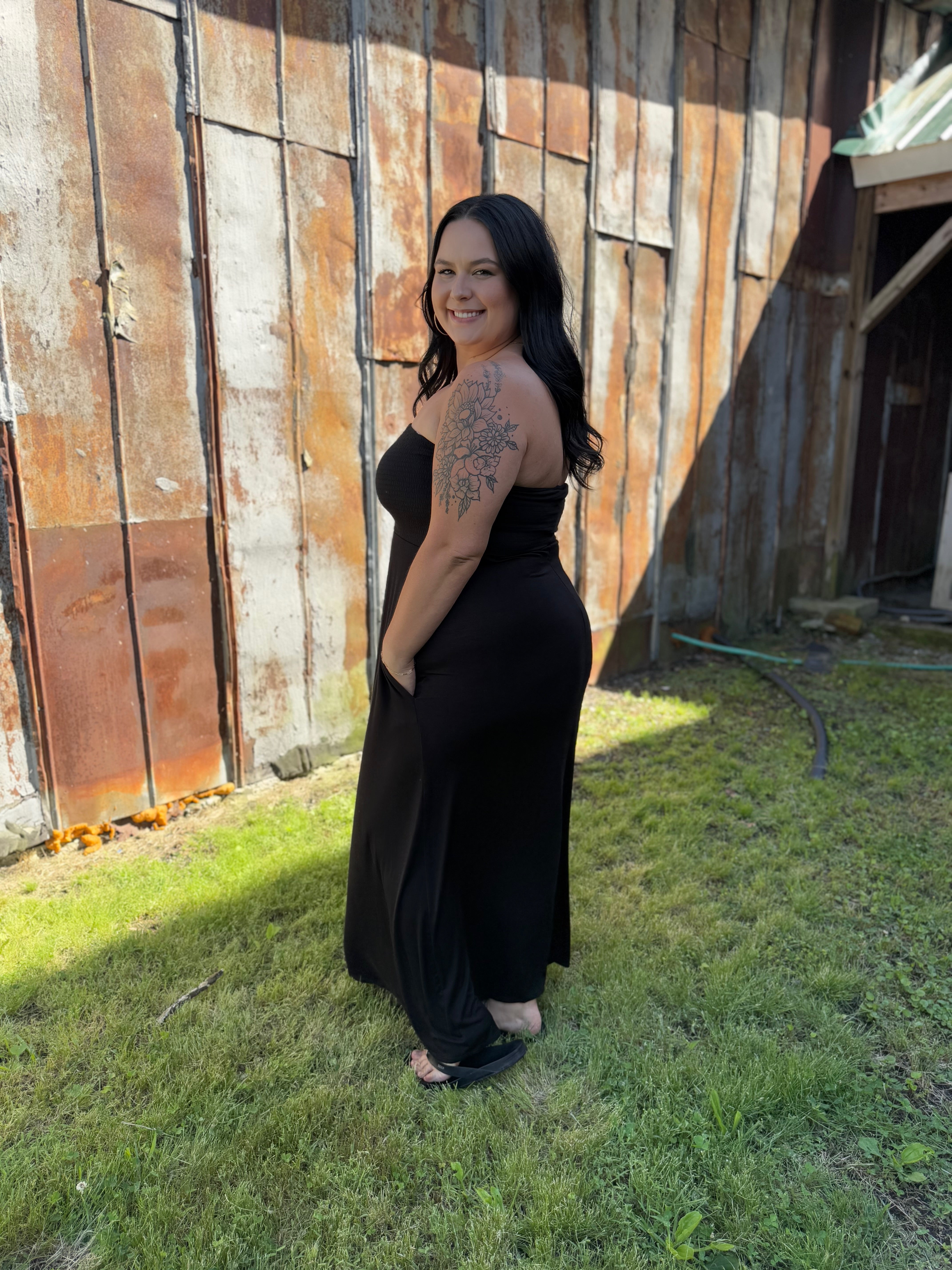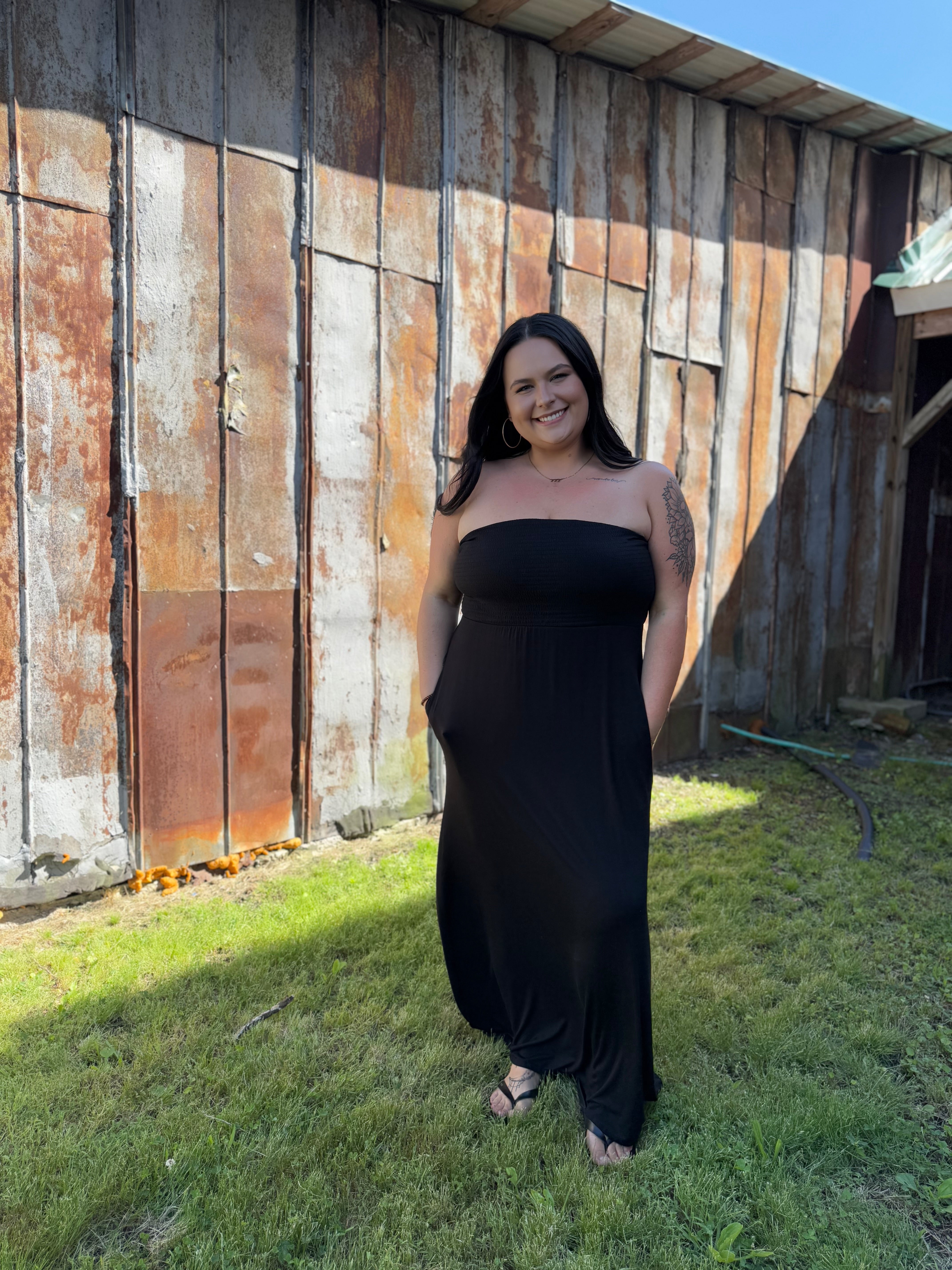 Expertly designed for ultimate comfort and versatility, the Misses Whispered Nights Dress is a must-have addition to your wardrobe. Crafted with soft, lightweight fabric, this strapless maxi dress features a smocked bust and convenient pockets for a flawless blend of style and functionality. Perfect for any occasion, stay effortlessly chic and comfortable all day long.