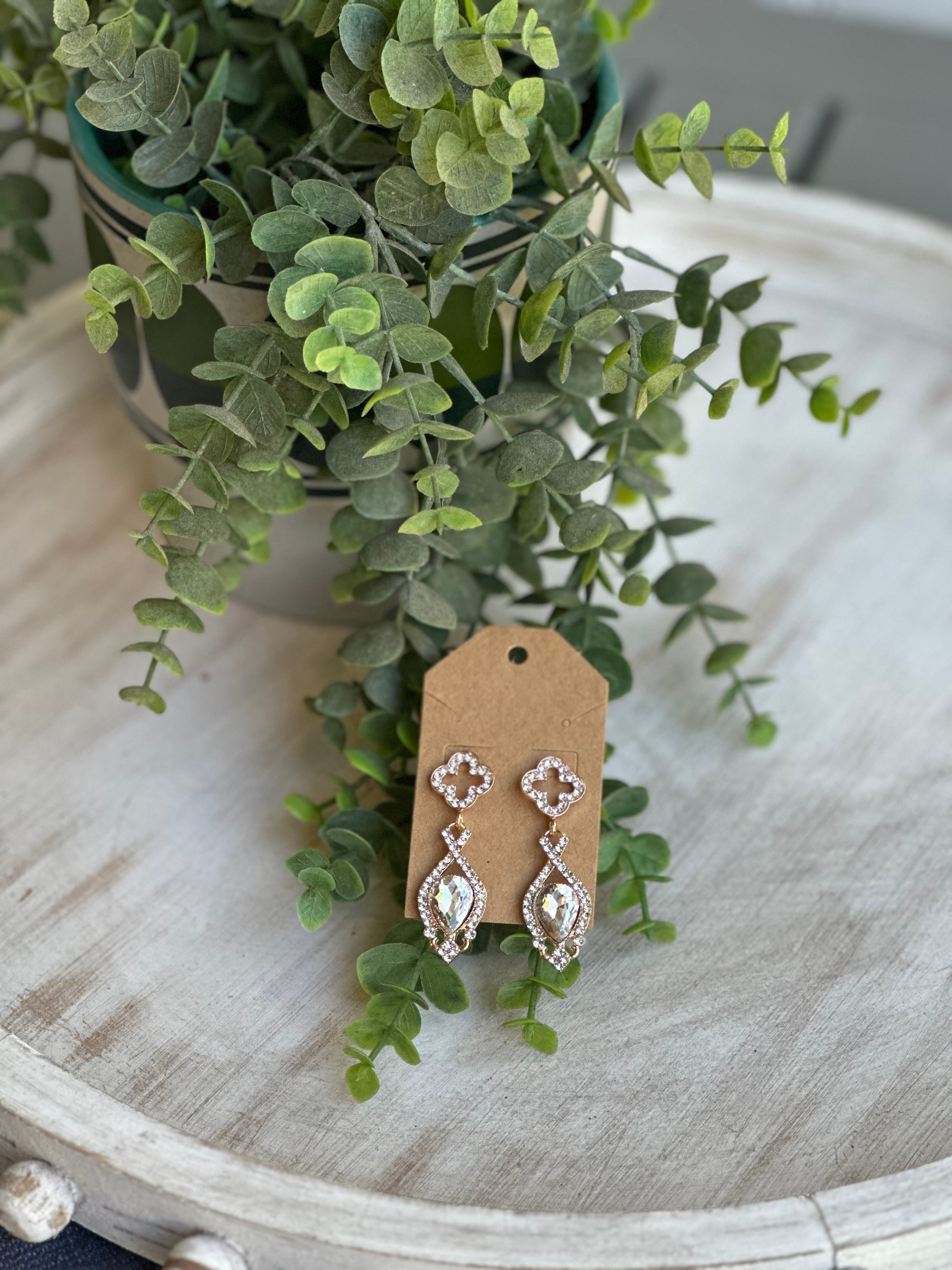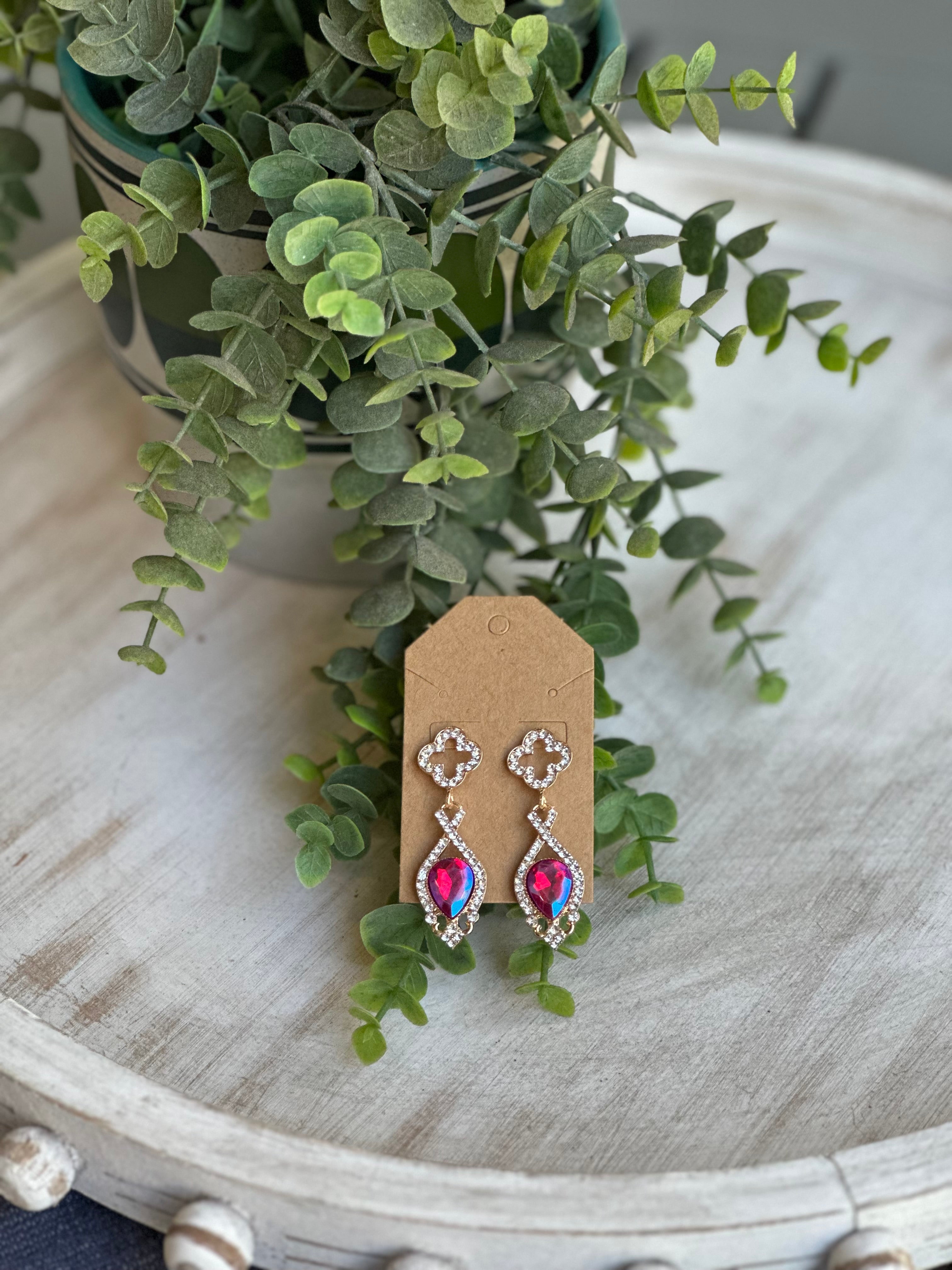 Add a lucky touch to your look with the Paige Earrings! Featuring charming clover shapes paired with delicate teardrop gemstones, these gold-plated earrings bring a playful sparkle to any outfit. Perfect for brightening your day or gifting someone special.