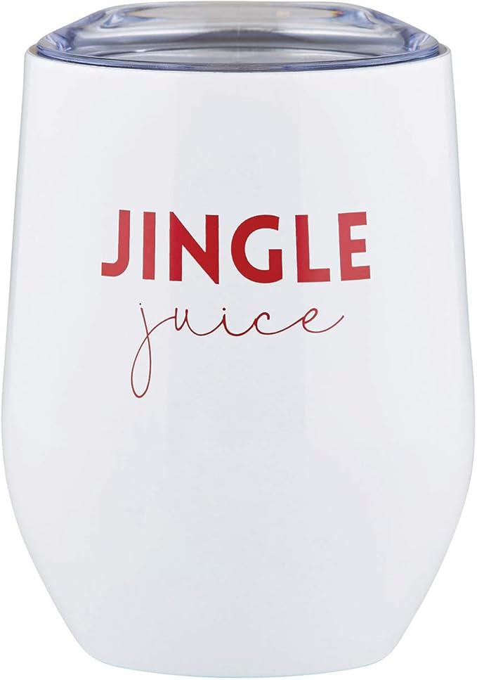 Sip in style this holiday season with the Jingle Juice Tumbler from Santa Barbara Design Studio. This 12-ounce stainless steel tumbler features double-wall insulation to keep your favorite beverages cold for up to 6 hours, while the secure BPA-free lid prevents spills. Standing 4.5 inches tall with a bright white finish and festive "Santa's little Helper" message, it's the perfect companion for holiday gatherings. Whether you're enjoying wine with family or gifting to someone special, this playful tumbler pairs beautifully with a bottle of wine for an effortless present.