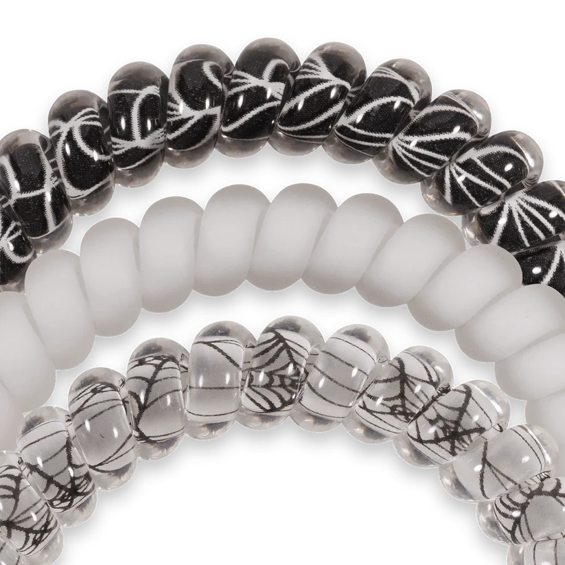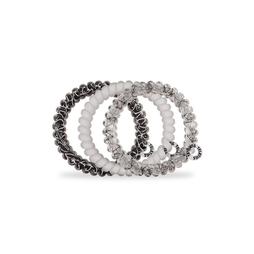 Webbed Small Hair Ties in Black and White offer a strong grip without damage, doubling as a chic wrist accessory when not in use. Your new favorite hair essentials all year round.