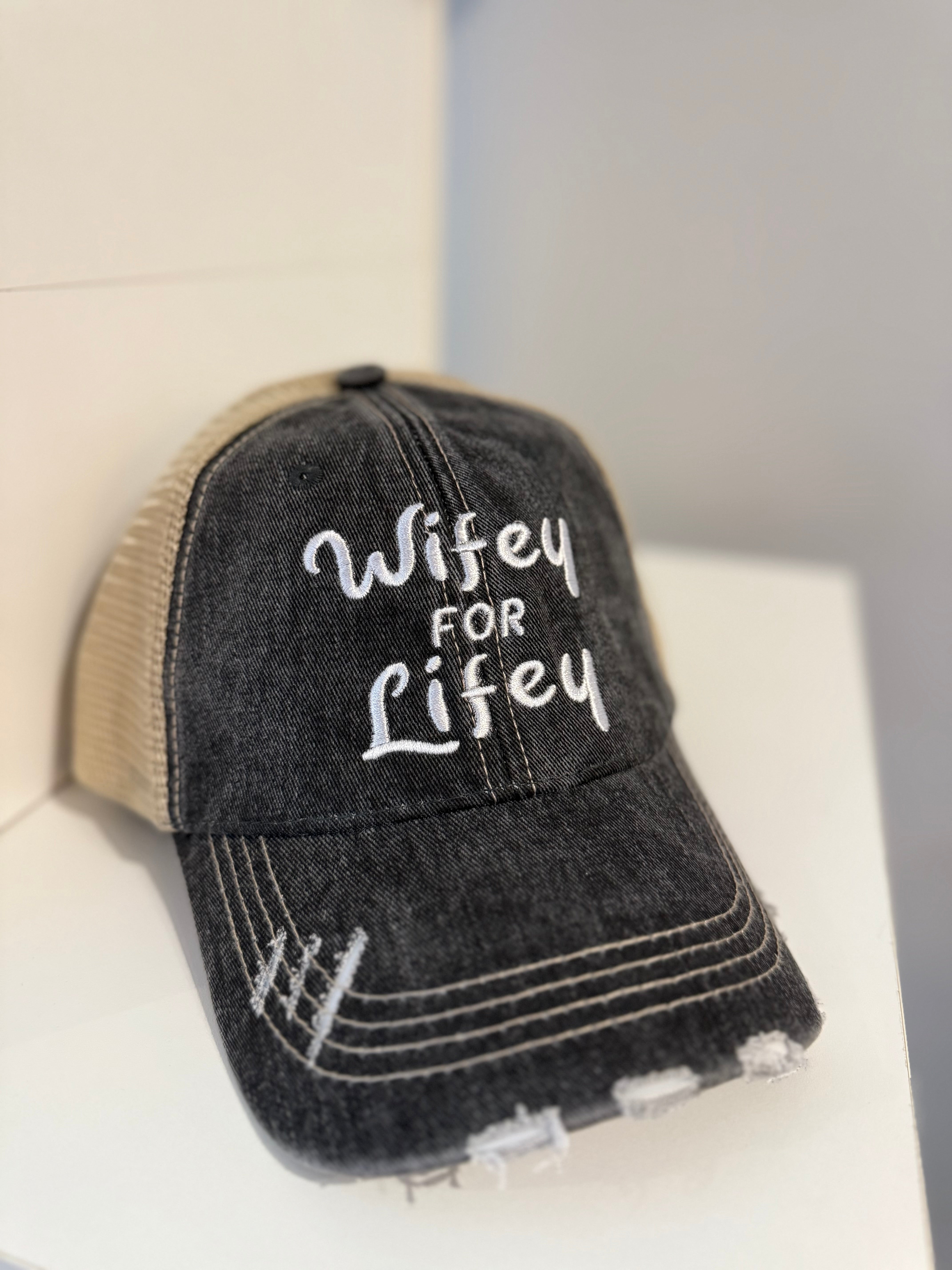 Show off your love with the Wifey for Lifey Trucker Hat, now available in four fun colors. This playful hat adds a cool, casual vibe to any outfit while keeping you shaded and stylish. Perfect for everyday wear or gifting to your favorite wifey!