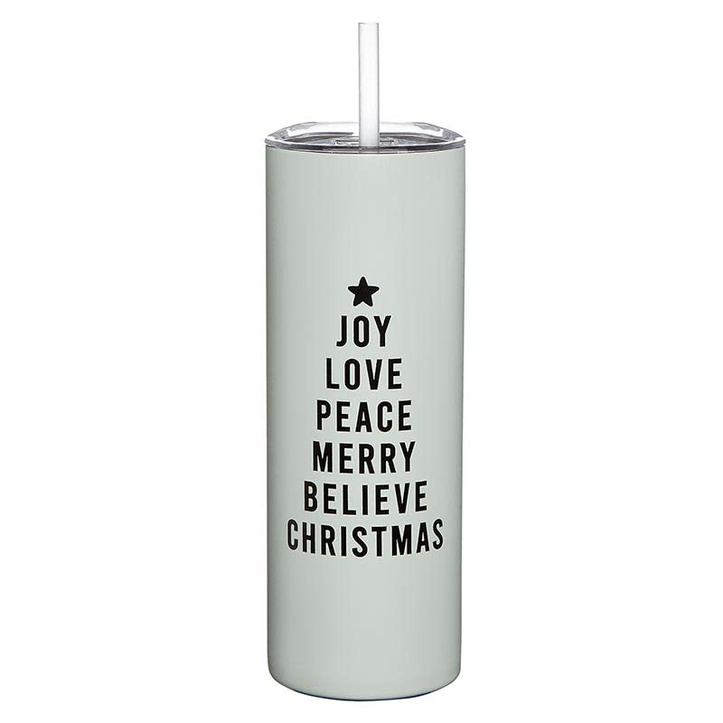 Spread the joy this season with our Skinny Tumbler 20oz JoyLovePeace—the perfect gift that keeps on giving! This sleek tumbler comes complete with a matching straw and secure lid, making it ideal for sipping your favorite hot or cold beverages on the go. Whether it's morning coffee, afternoon smoothies, or evening tea, this cheerful companion delivers both style and function. Durable, practical, and wrapped in feel-good vibes, it's a gift that'll make anyone smile. Cheers to thoughtful gifting!