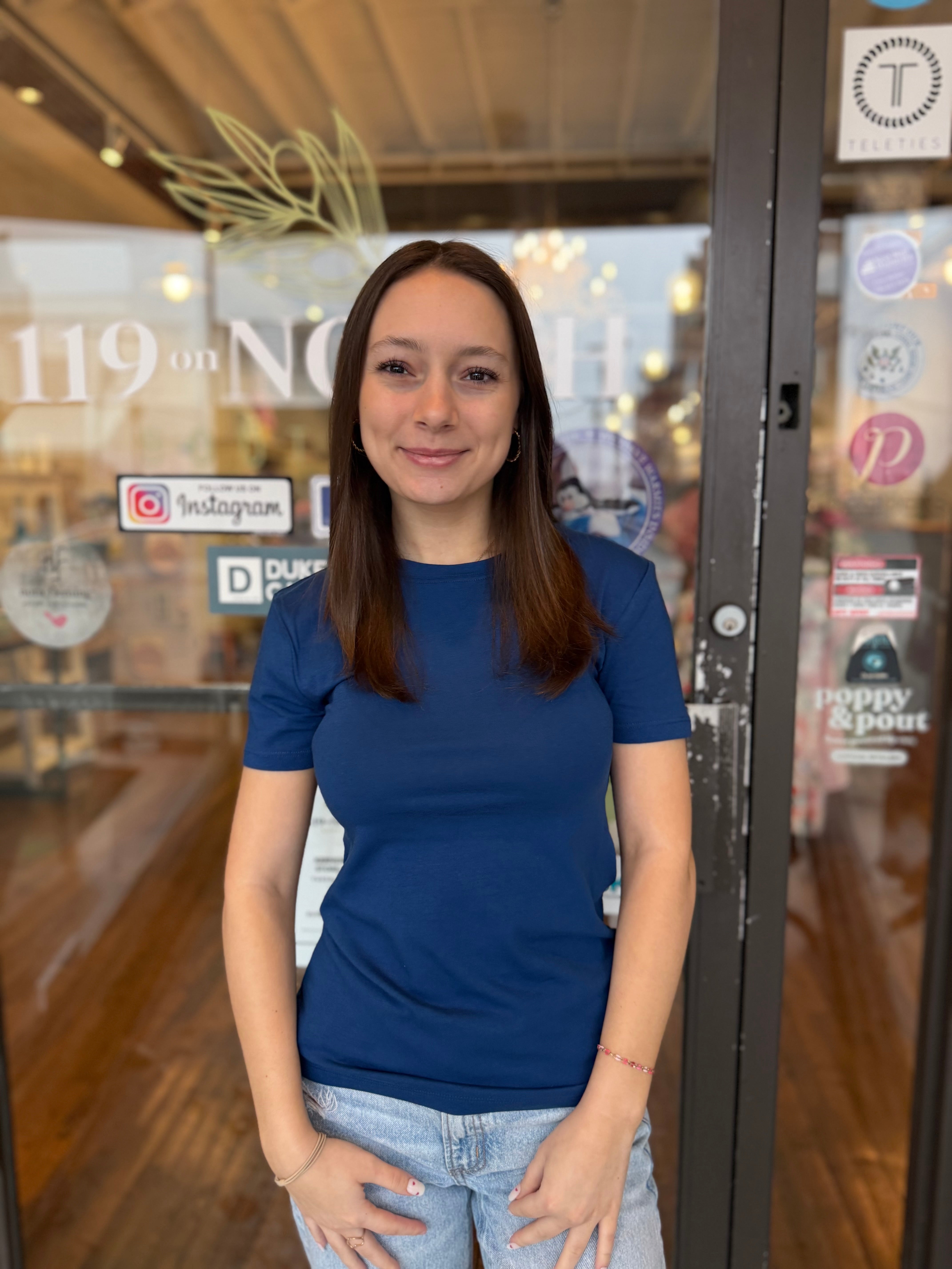 Layer it under a cardigan, wear it solo, or tuck it into your favorite bottoms—this essential tee works with everything in your closet.