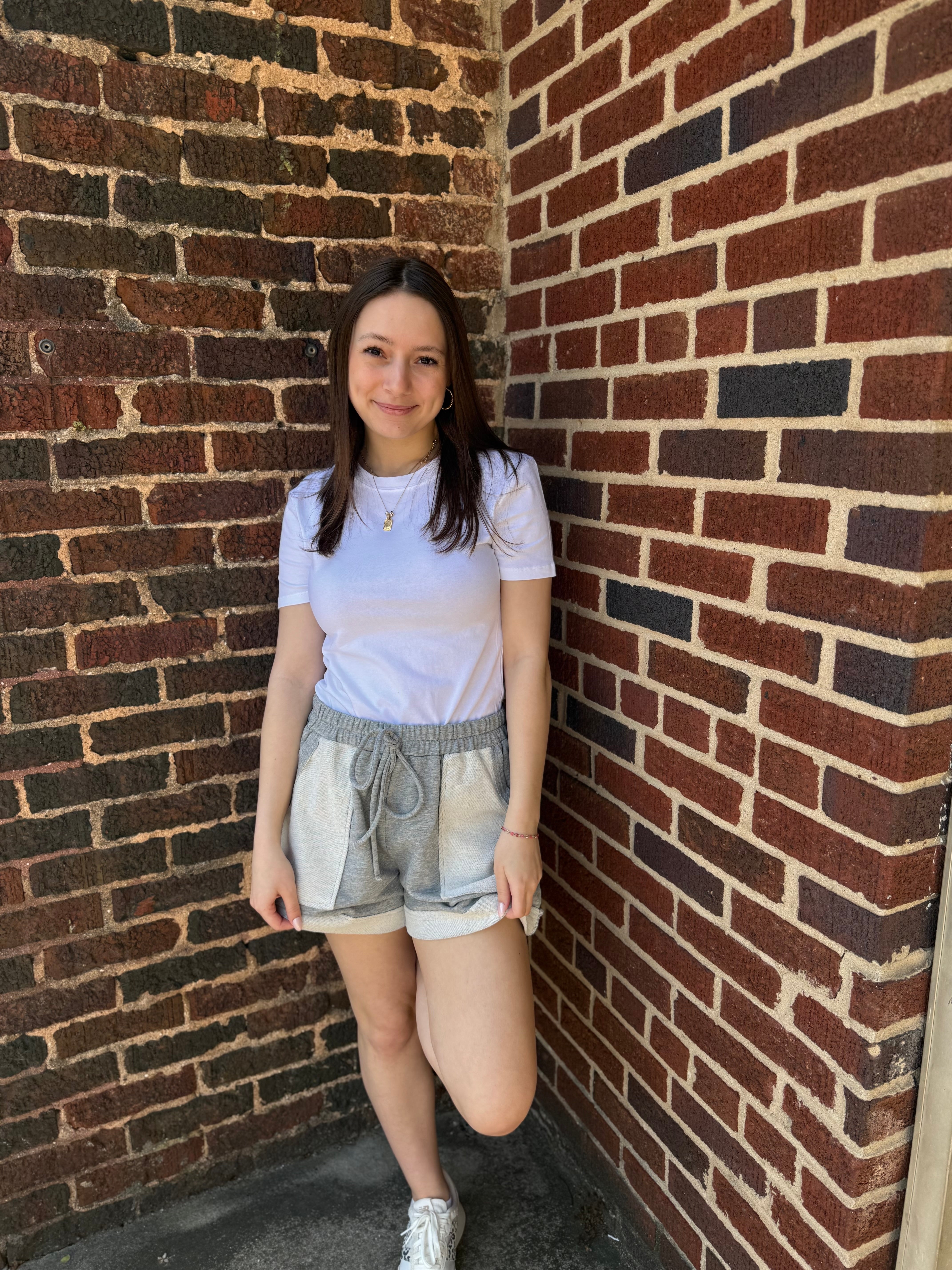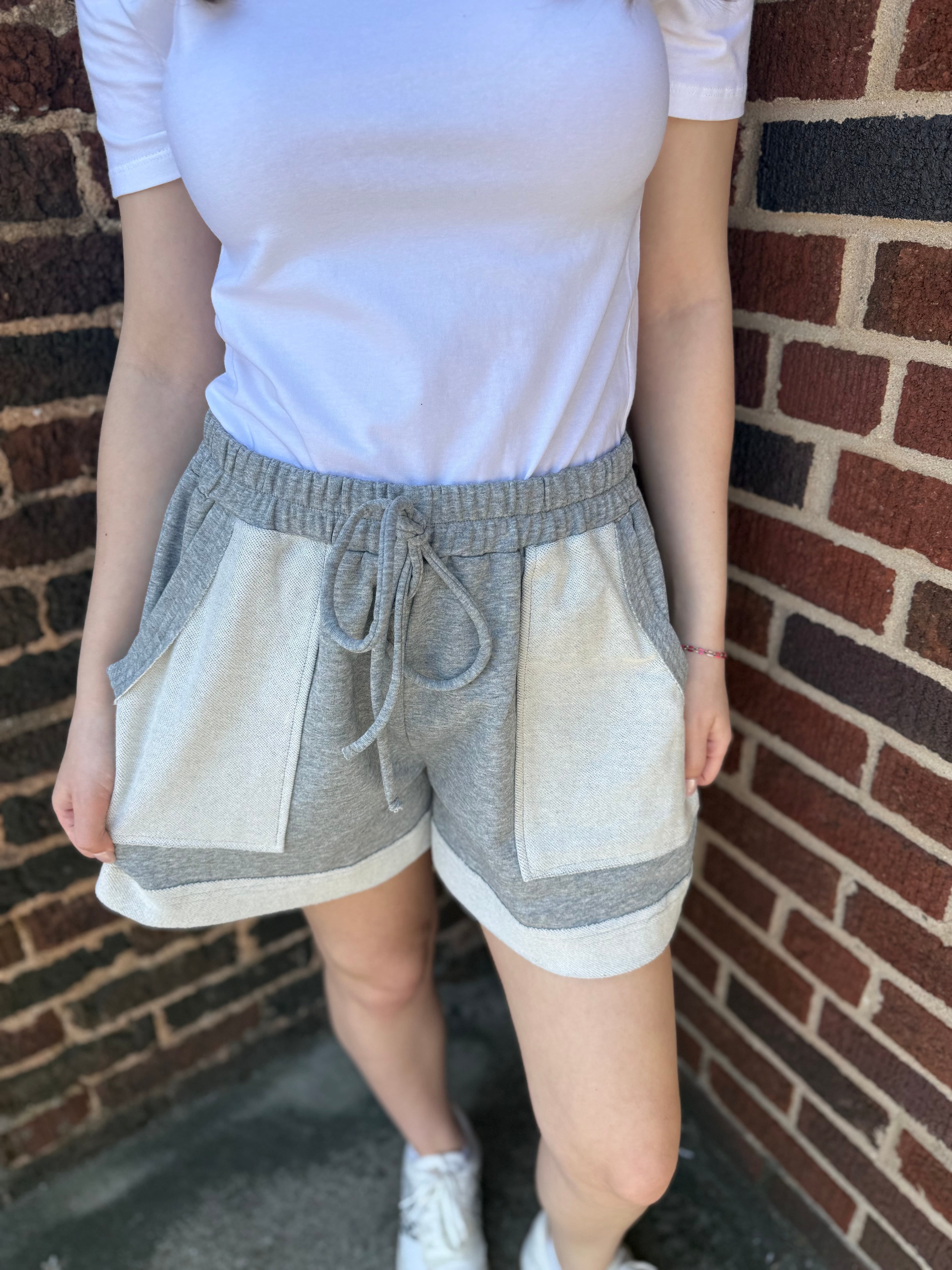The ultimate in casual comfort. These grey French terry knit shorts are your go-to for relaxed days at home, weekend errands, or anything in between. Soft, stretchy, and effortlessly easy to wear — with side pockets that actually fit your essentials.