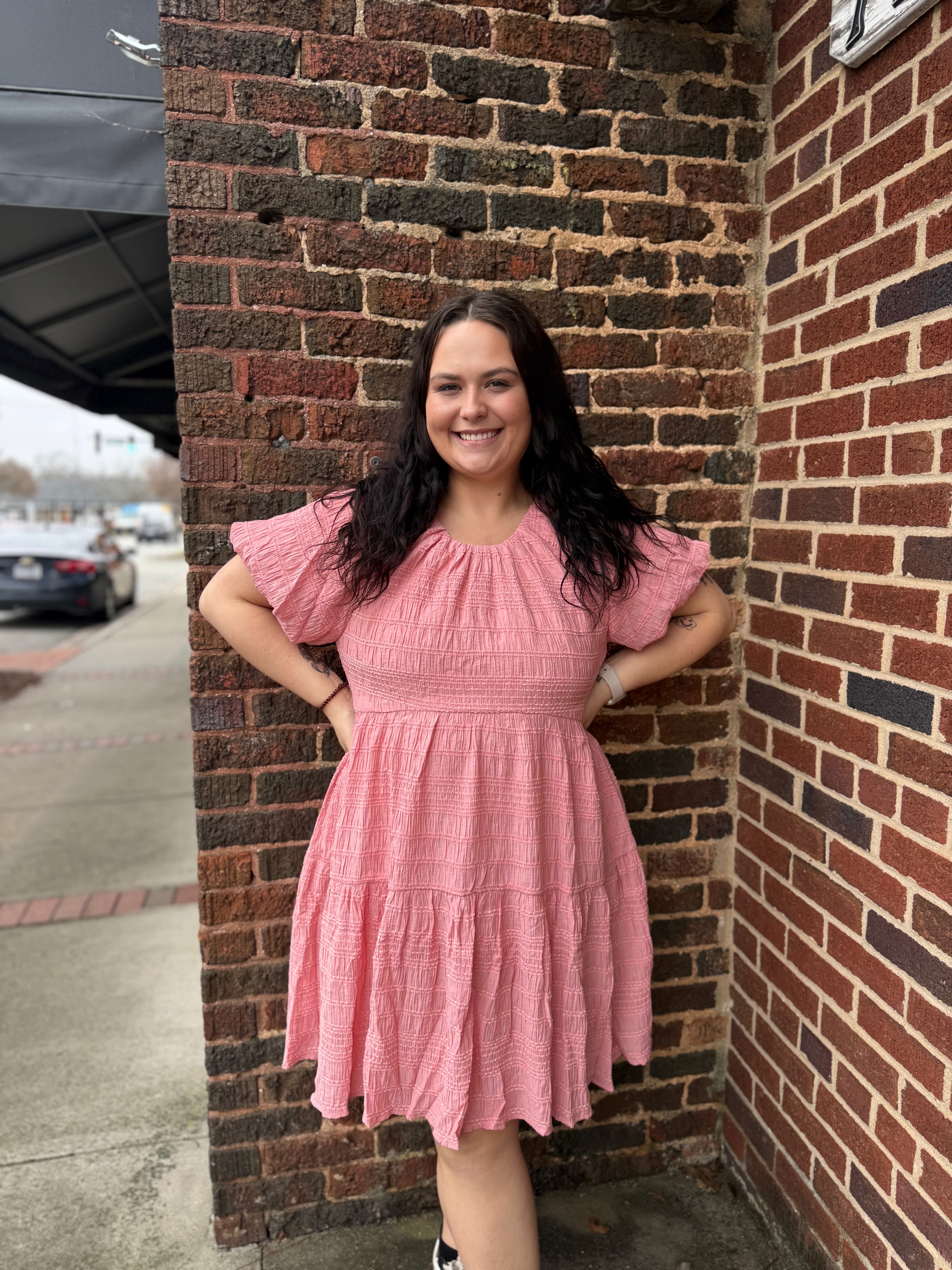 Discover effortless elegance in this textured loose fit dress that combines relaxed sophistication with charming details. Designed for the woman who values both comfort and style, this dress brings a fresh perspective to your warm-weather wardrobe with its unique back detail and luxurious texture.