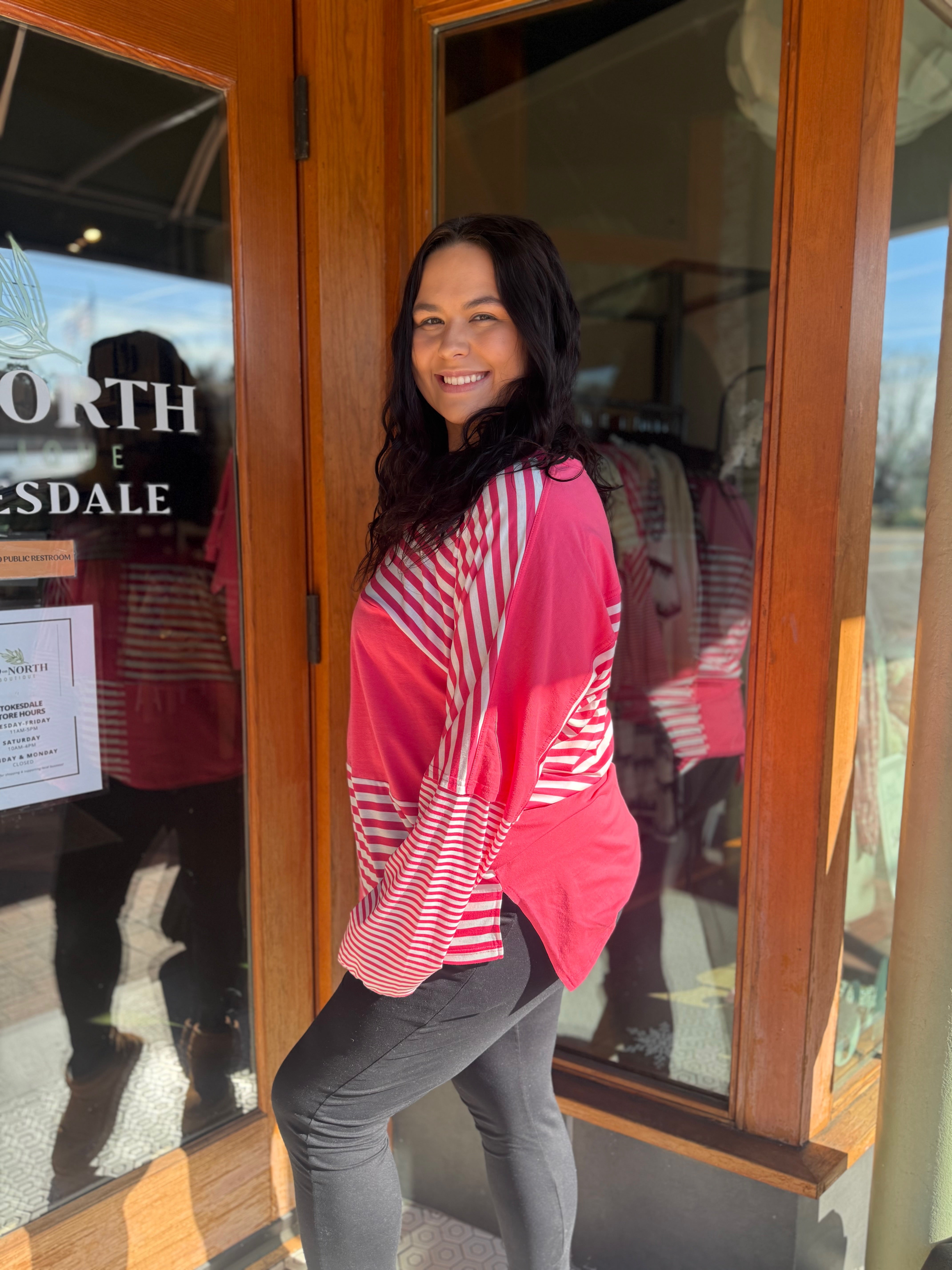 Spread the love in this charming Pink Colorblock Top! Perfect for Valentine's Day and beyond, this sweet top features bold colorblock panels in pretty pink hues that create a flattering, modern silhouette. The playful design and comfortable fit make it ideal for date nights, Galentine's brunches, or celebrating love all season long. Pair with your favorite jeans or skirt for an effortlessly romantic look that's sure to turn heads.