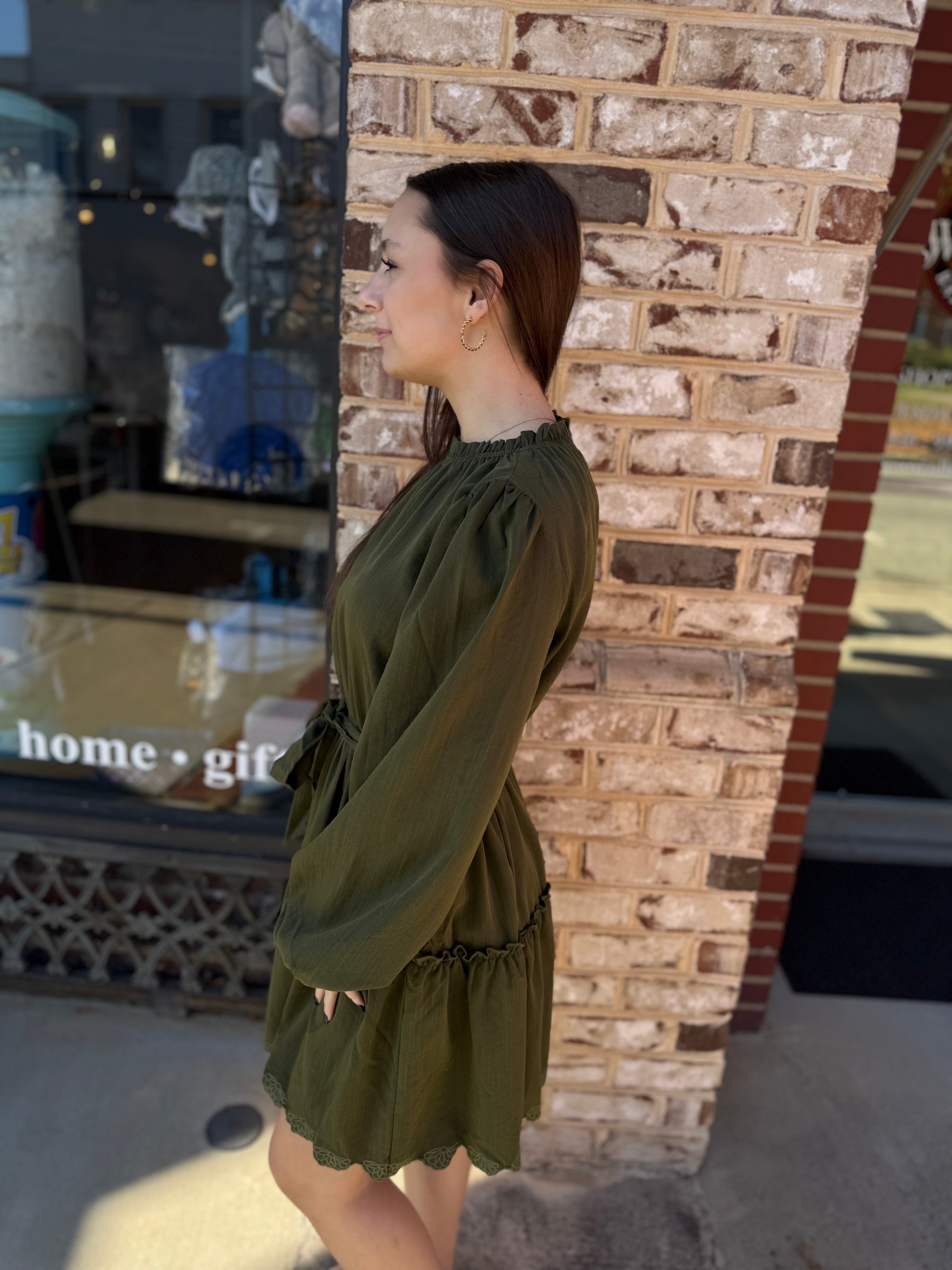 Slip into effortless style with the Misses Wild Fern Mini Dress, a playful piece that brings movement and personality to your everyday rotation. Designed with long sleeves for versatile layering and a flattering cinched waist that defines your silhouette, this mini dress strikes the perfect balance between comfort and chic. The embroidered hemline adds a whimsical touch of detail that catches the eye and elevates the entire look. Whether you're heading to brunch, running errands, or meeting friends for an evening out, this dress transitions seamlessly from day to night. A wardrobe essential that proves you don't have to choose between looking put-together and feeling great.