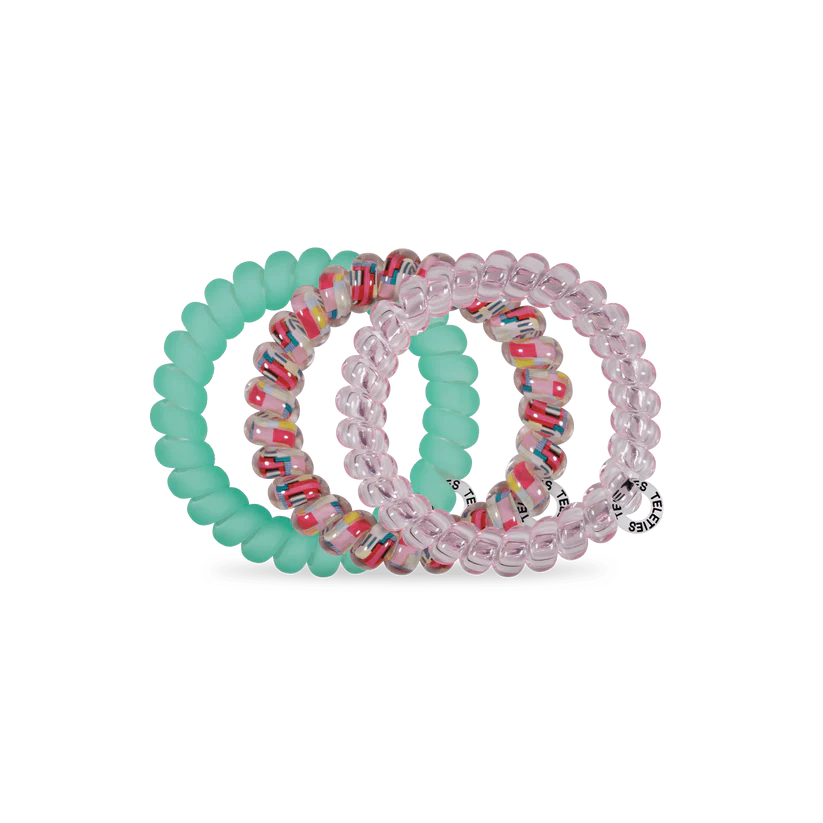 - 3 small Teleties hair ties in vibrant Spring Splash