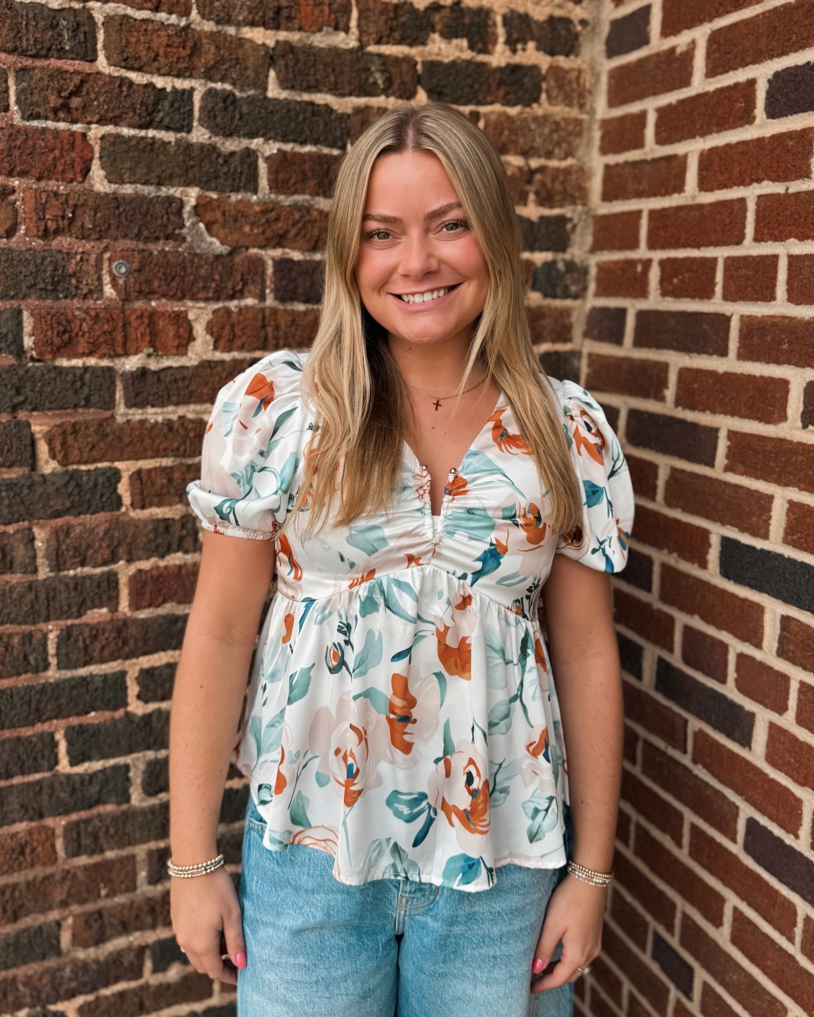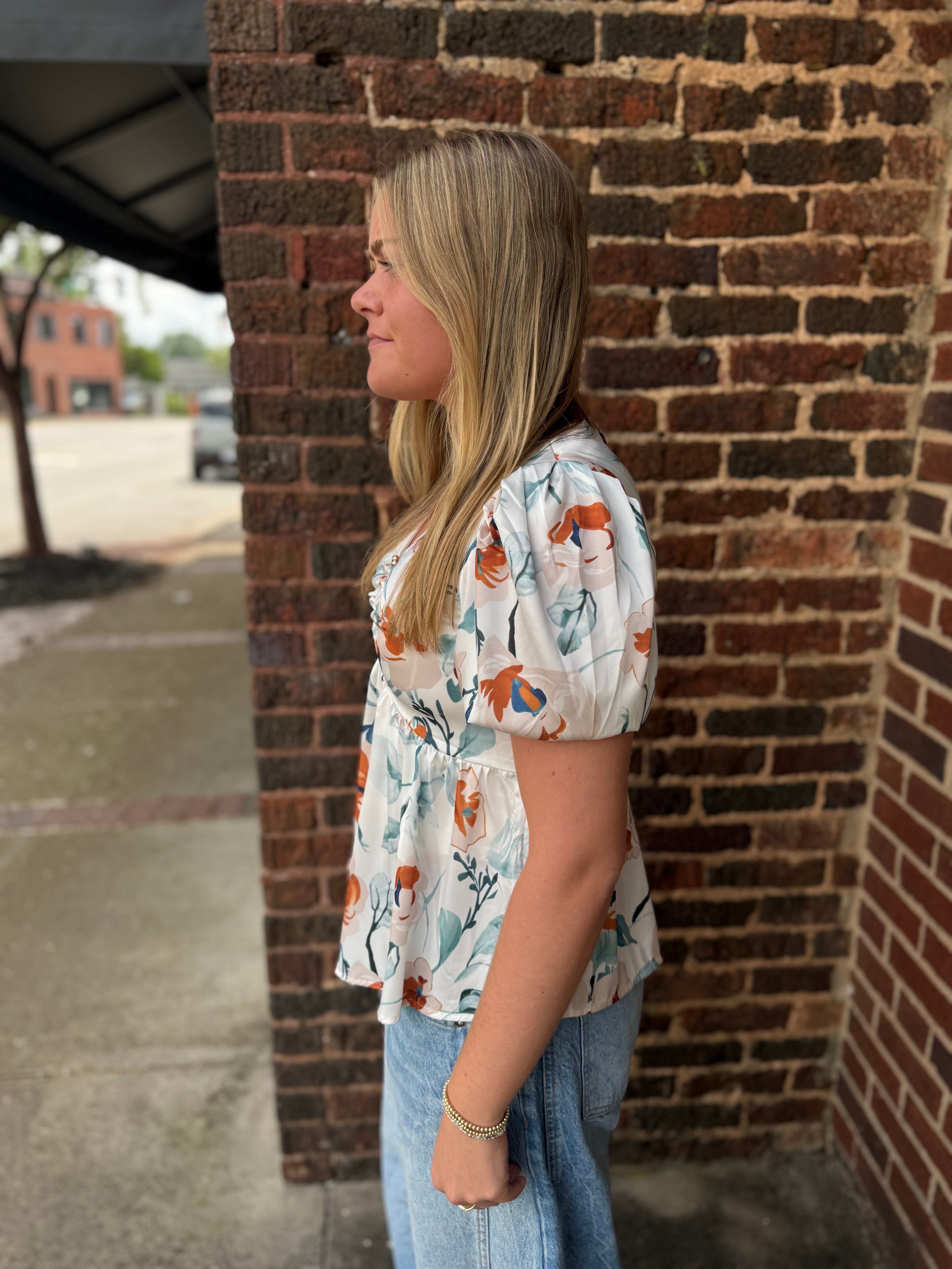 Introducing the Misses Blossom Breeze Top, the perfect combination of style and comfort. Made with a silky material and a deep v neck feature, this top will add an elegant touch to any outfit. The floral pattern adds a feminine flair, making it a must-have in your wardrobe.
