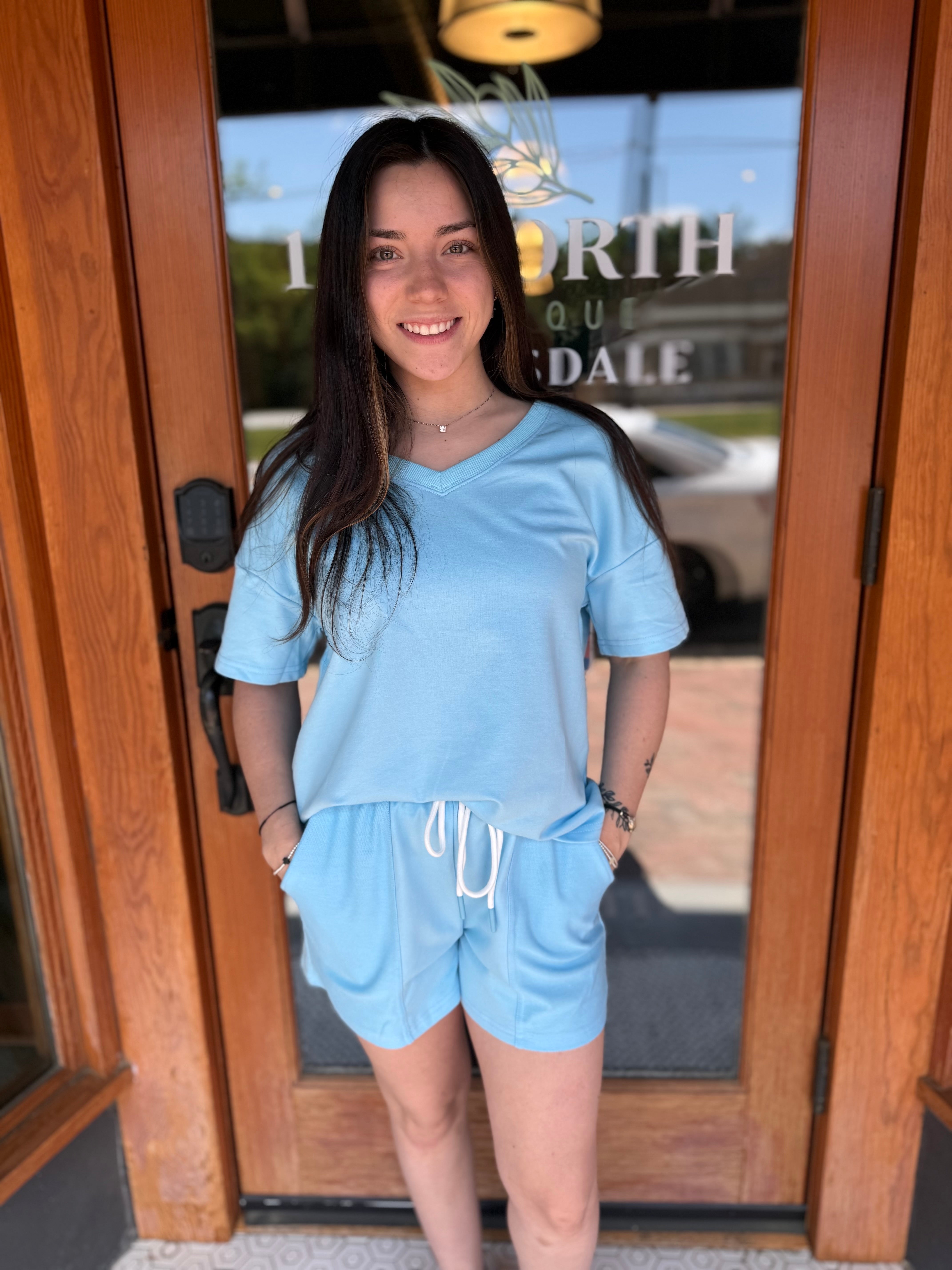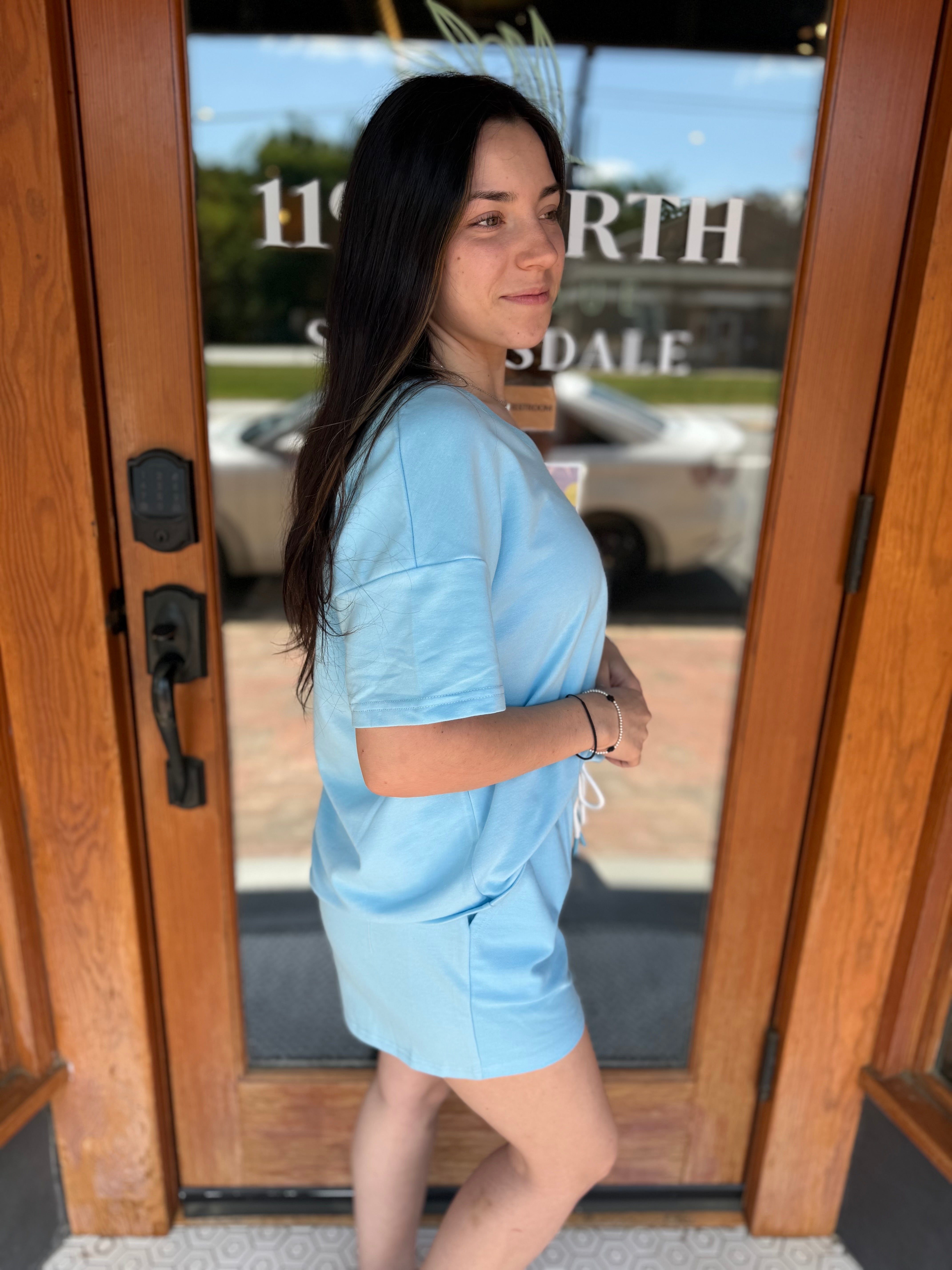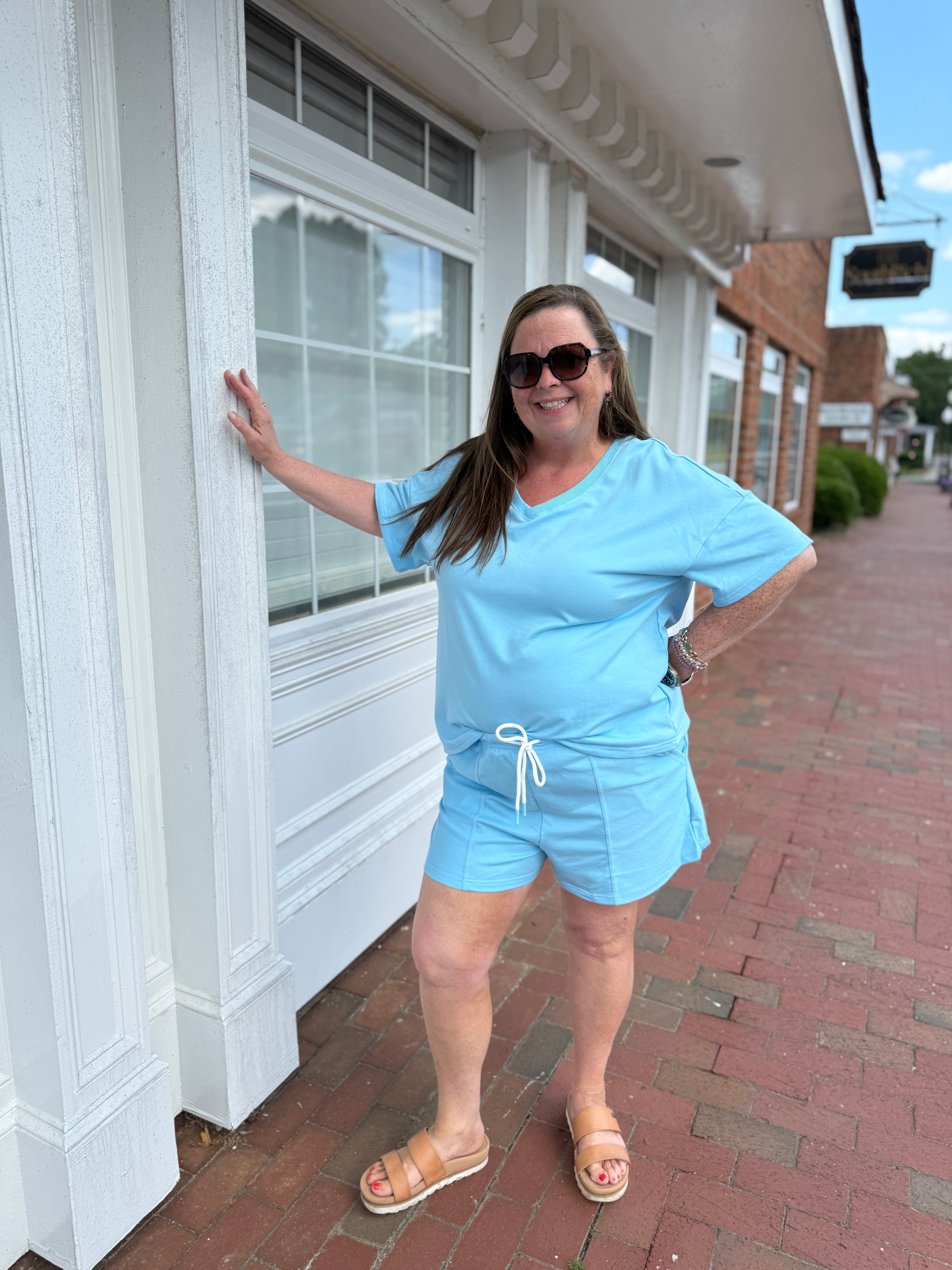 Introducing the Misses Carolina Skies Short Set, perfect for cute and casual looks. Stay comfortable with the elastic and drawstring waistband while looking stylish in the beautiful Carolina blue color. Elevate your wardrobe with this must-have two piece set.
