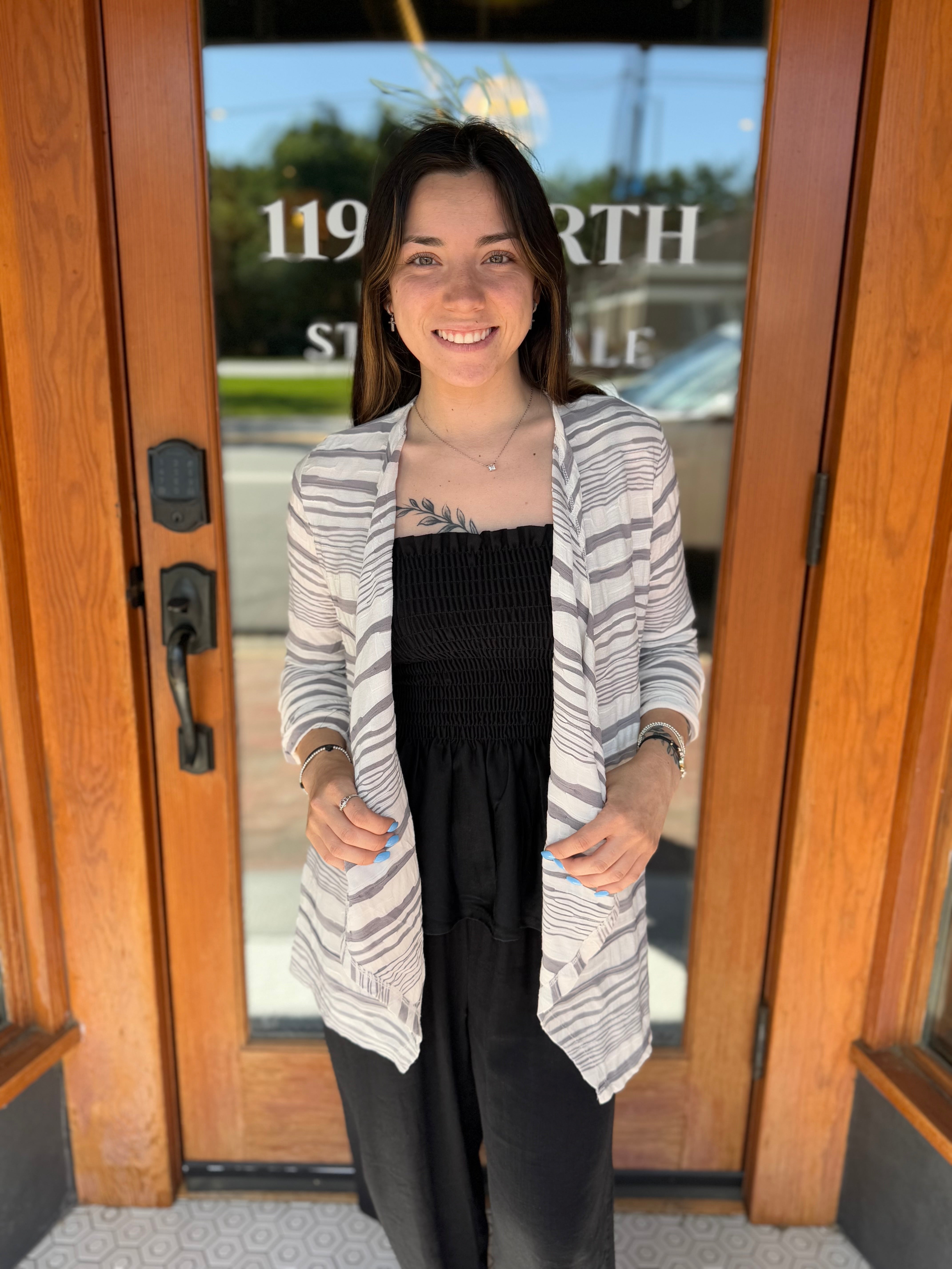Elevate your wardrobe with our Misses Fly Away cardigan! Made with a unique and abstract design, this cardigan adds visual interest to any outfit and is perfect for layering throughout the seasons. With two versatile color options, this cardigan is a must-have for any fashion-forward individual.