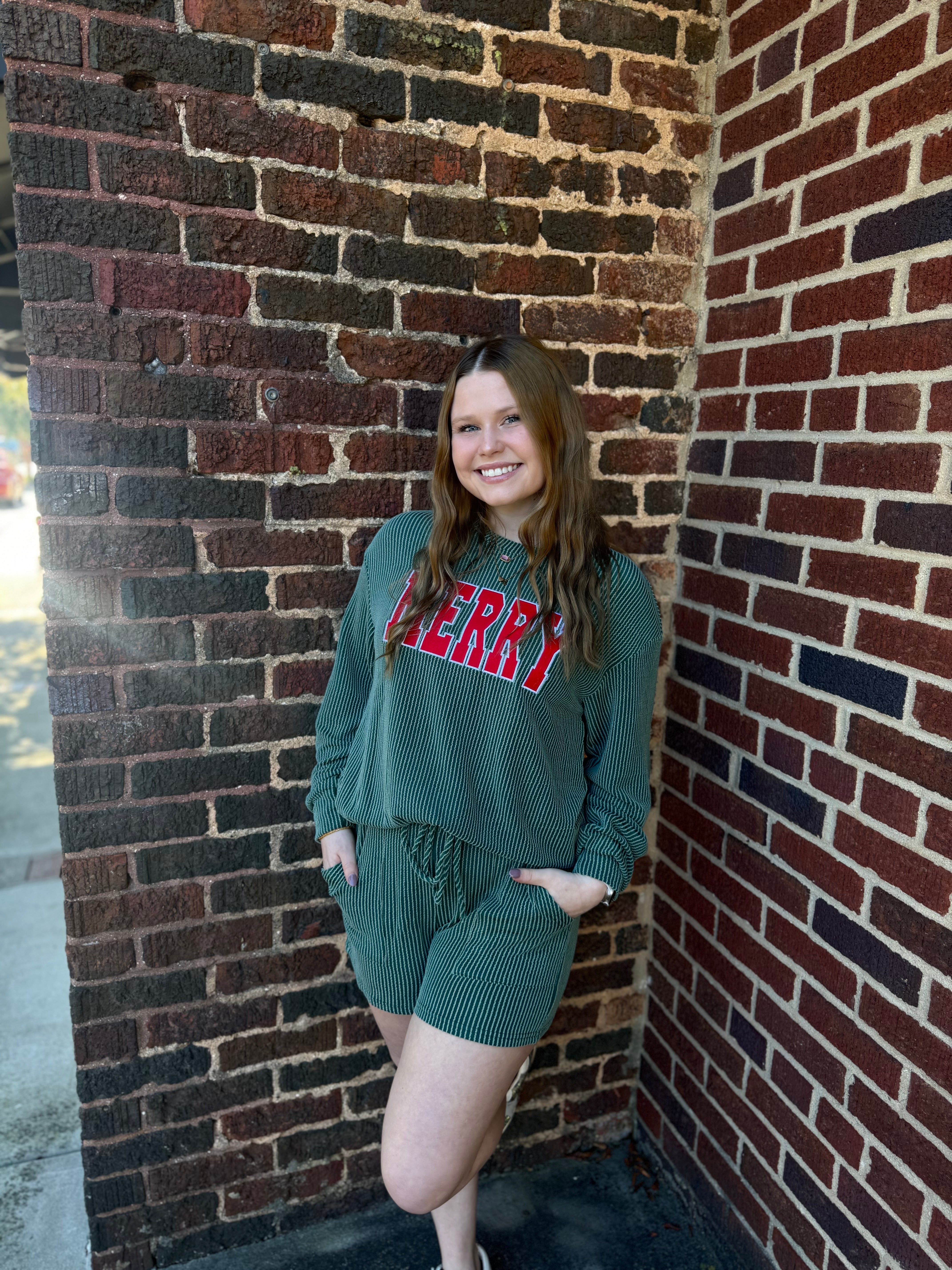 Get cozy and festive with the Misses Merry Corded Set! Perfect for lounging with loved ones, this two-piece set brings holiday cheer to your downtime. Soft, comfortable, and full of seasonal charm, it’s your go-to outfit for celebrating the most wonderful time of the year in style and comfort.