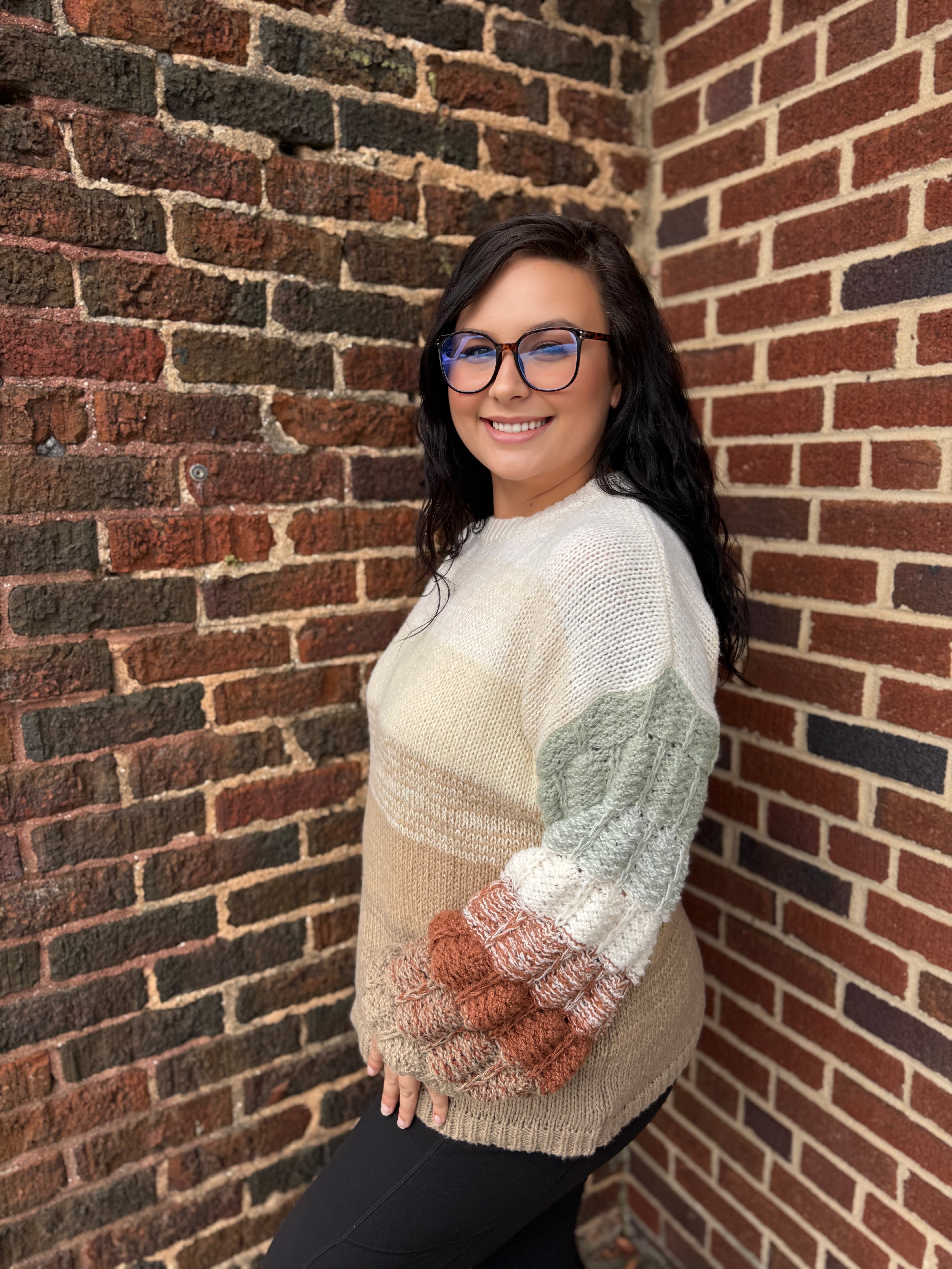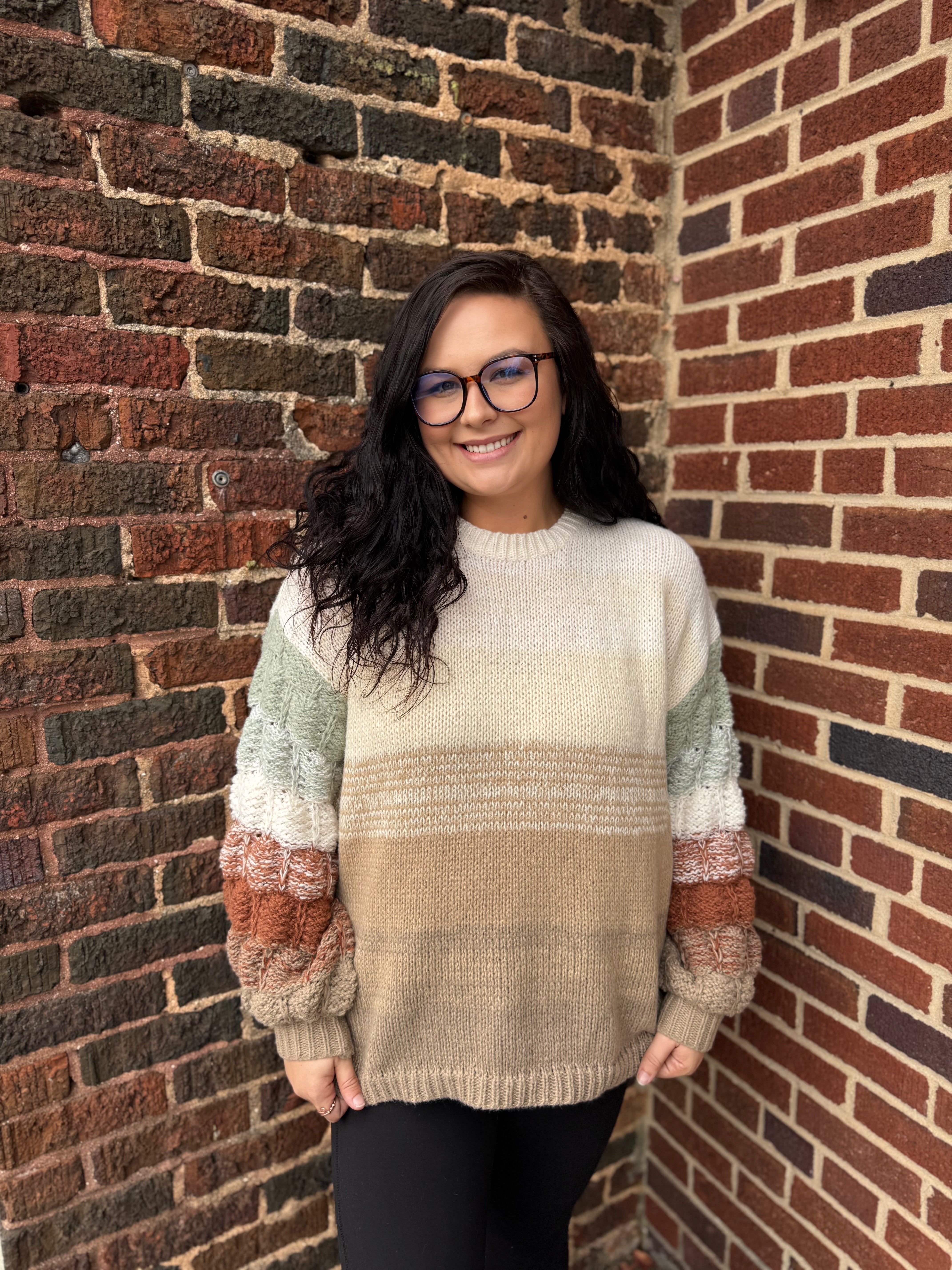 Snuggle up in style with our Misses Ombre Java Chip Sweater! This cozy, soft sweater boasts a unique green and brown color scheme, adding a touch of personality to any outfit. And with perfectly lengthened balloon sleeves, it's just the right mix of comfort and fashion. Available in a range of sizes, this sweater is sure to fit you perfectly.