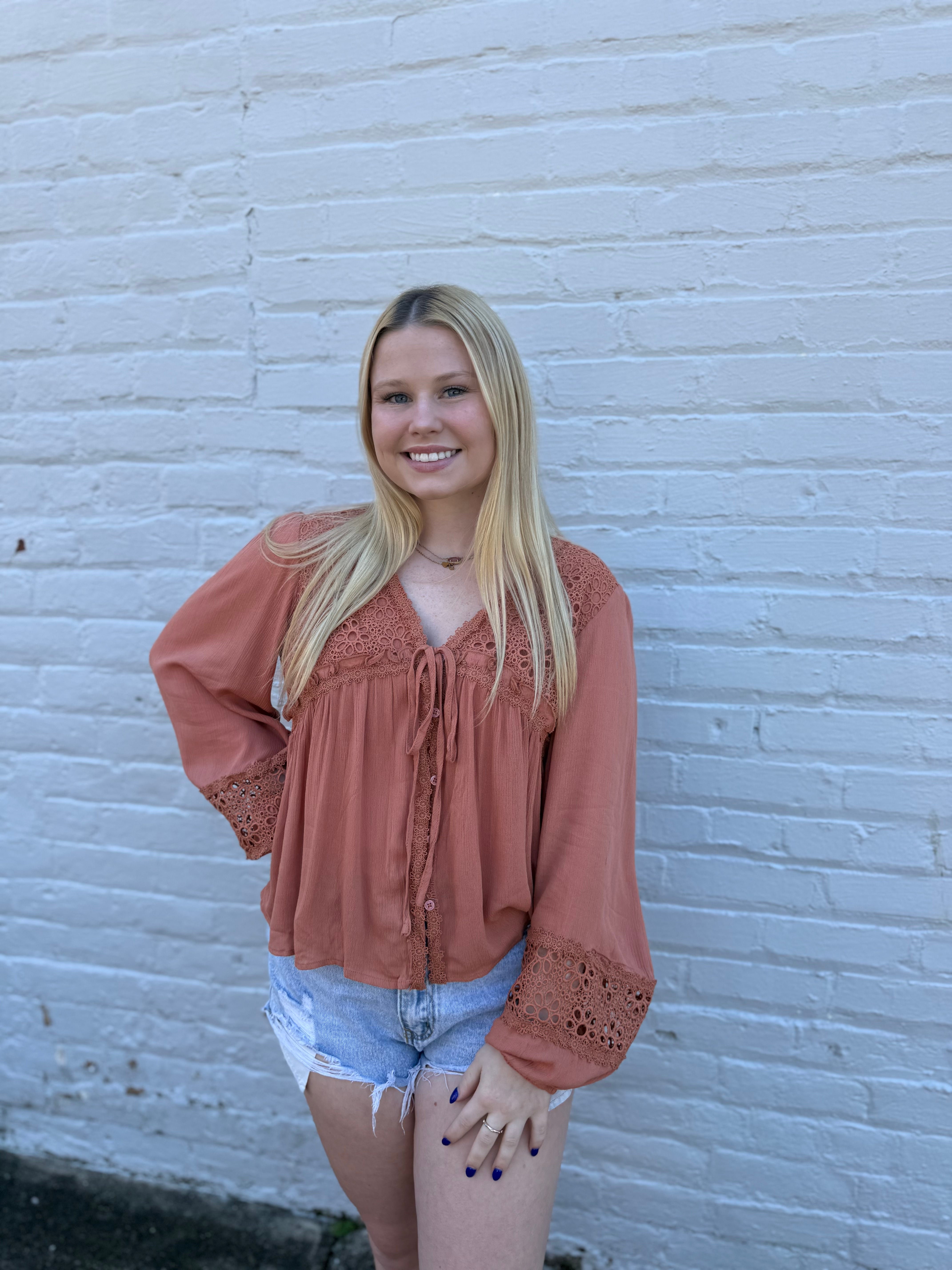 Channel carefree vibes with the Misses Sunset Stroll Top. This playful boho favorite features a flowy silhouette, long sleeves, and a flattering V-neck that’s perfect for any wanderer. Lightweight and breezy, it’s your go-to for those easy, sun-kissed days when comfort meets style effortlessly.