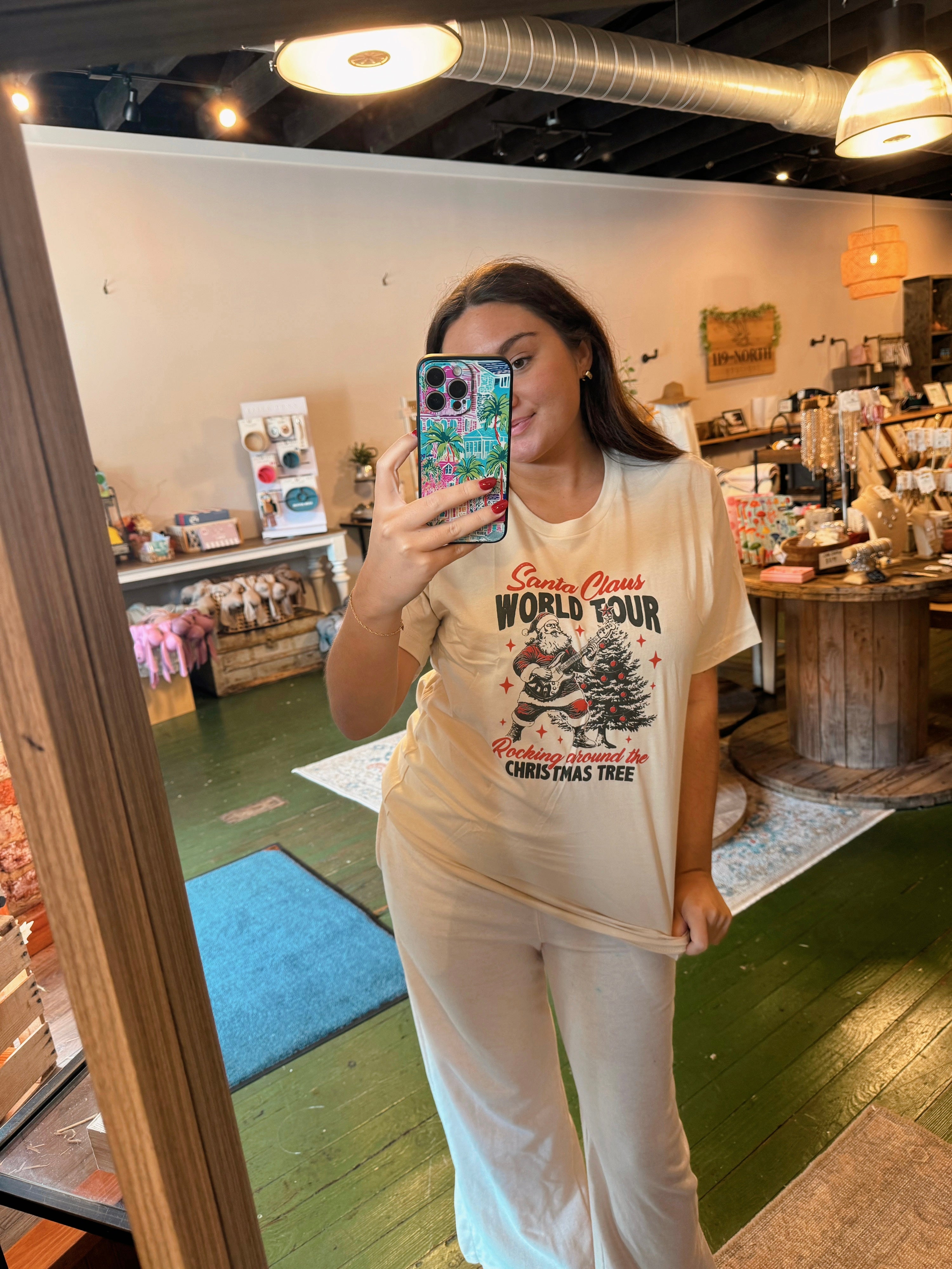 Celebrate the season in style with the Santa World Tour Tee! Perfect for spreading holiday cheer at every festive occasion, this tee brings a playful touch to your wardrobe. Swing by our Stokesdale store to snag yours in person and get ready to jingle all the way in comfort and fun.