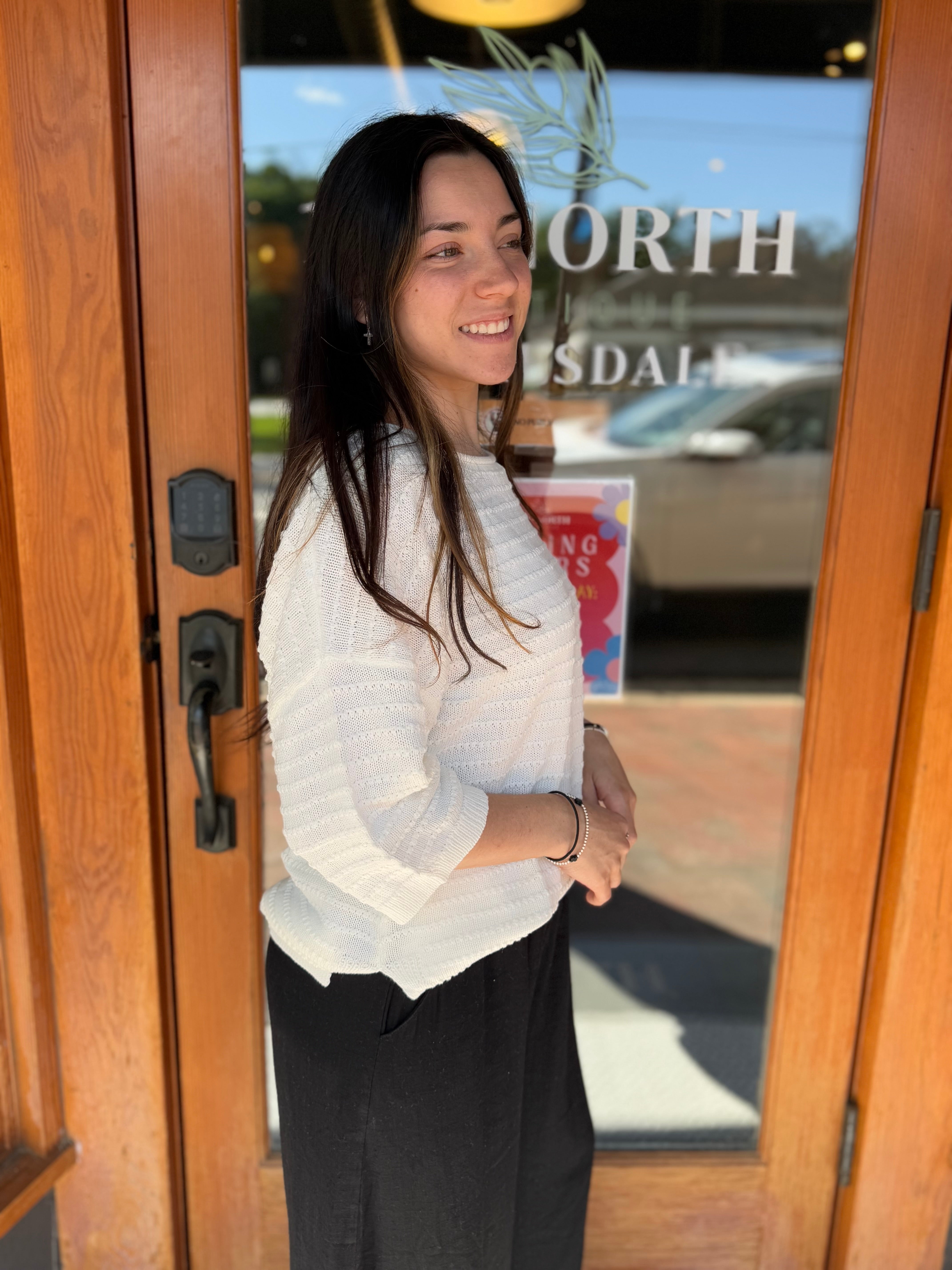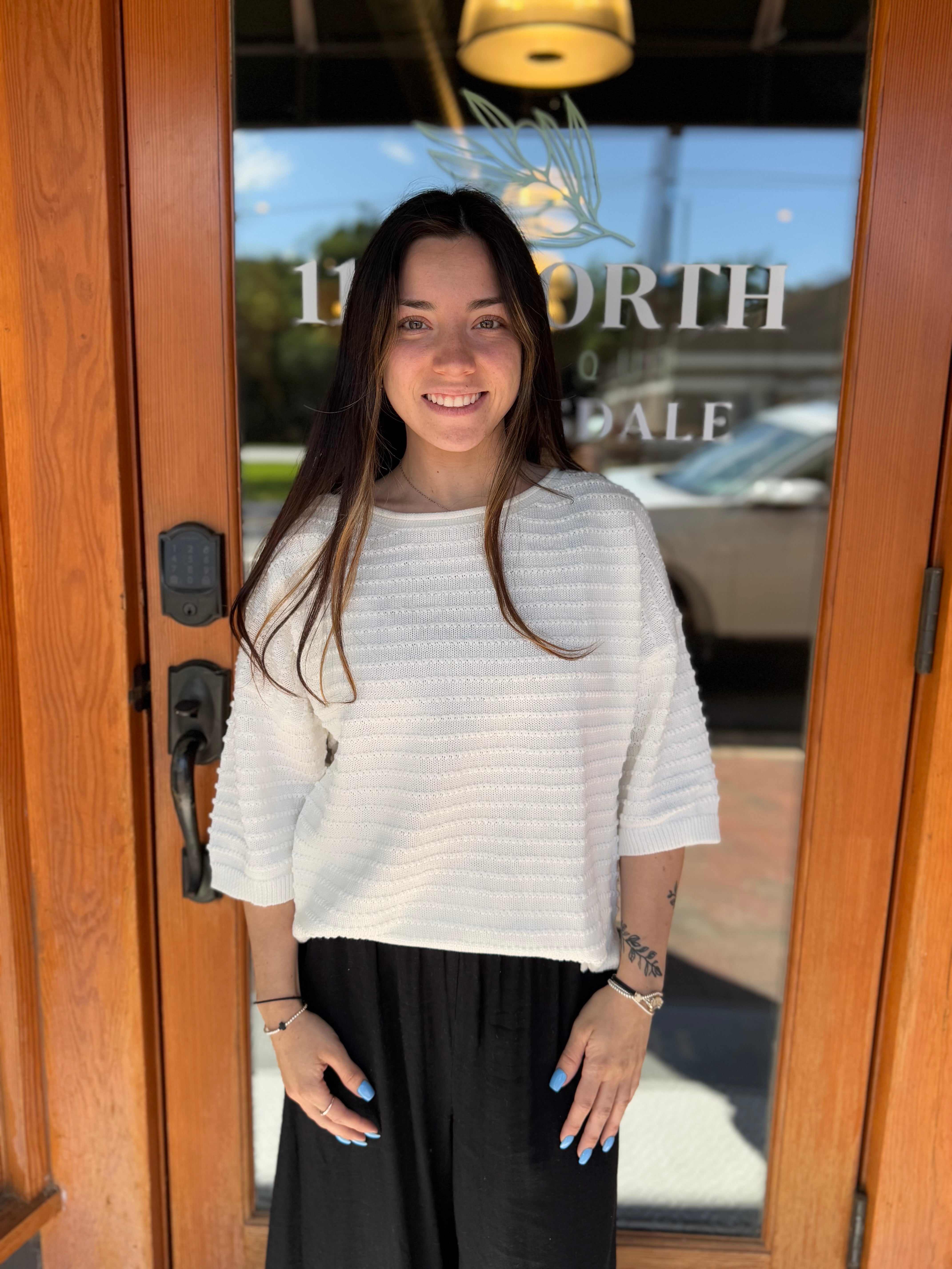 Expertly designed for relaxed summer style, the Summertime Slouch Top boasts a stylish slouchy fit and a unique textured stripe pattern. Made with high-quality knit fabric, this top offers both comfort and fashion, making it a must-have for any casual wardrobe.